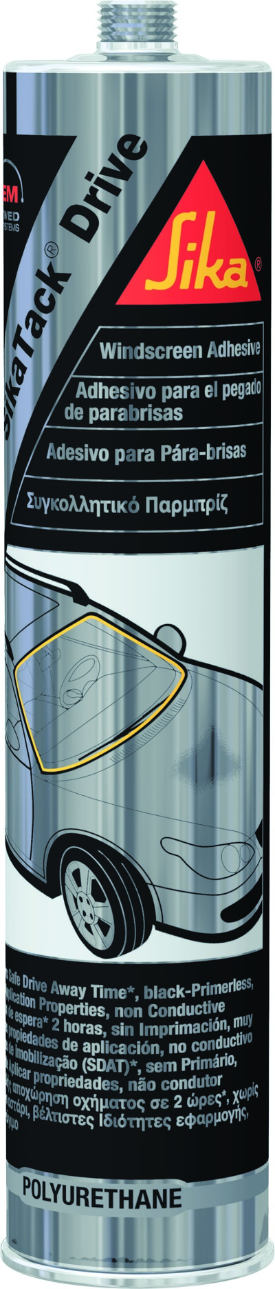 Adeziv poliuretanic monocomponent pentru lipit parbrize. SikaTack� Drive NEW garanteaza timp de imobilizare scazut. SikaTack� Drive NEW contine un accelerator de intarire este aplicabil la rece independent de temperatura si umidita-tea mediului de la 5�C ! Datorita caracteristicilor excelente, SikaTack� Drive NEW asigura rapiditate la inlocuirea parbrizelor chiar si in conditii climatice dificile. Este mai usor de aplicat decat adezivii bicomponenti. Se aplica fara primer pe parbrize cu serigrafie neagra, are stabilitatea cordonului foarte buna; aplicabil la geamurile cu antena integrata; previne coroziunea de contact la caroserii de aluminiu; izolator electric. Timp de imobilizare: a) 2 ore, echipare cu dublu airbag; b) 1 ora, fara airbag;