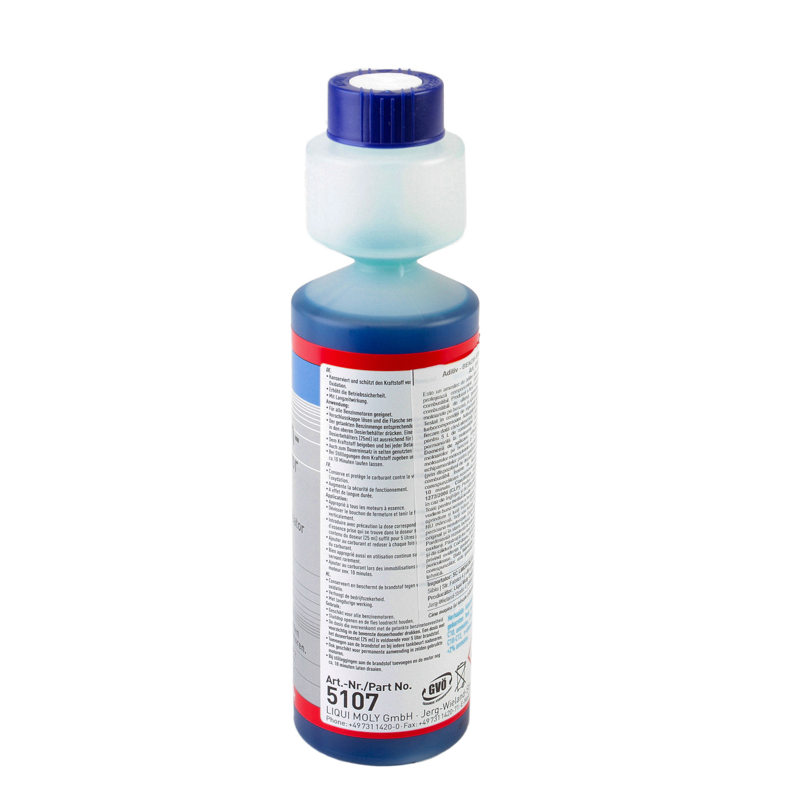 25 ml (adăugat prin dispozitiv de dozare) este suficient pentru a păstra 5 litri de combustibil. Înainte de a fi depozitat, adăugați