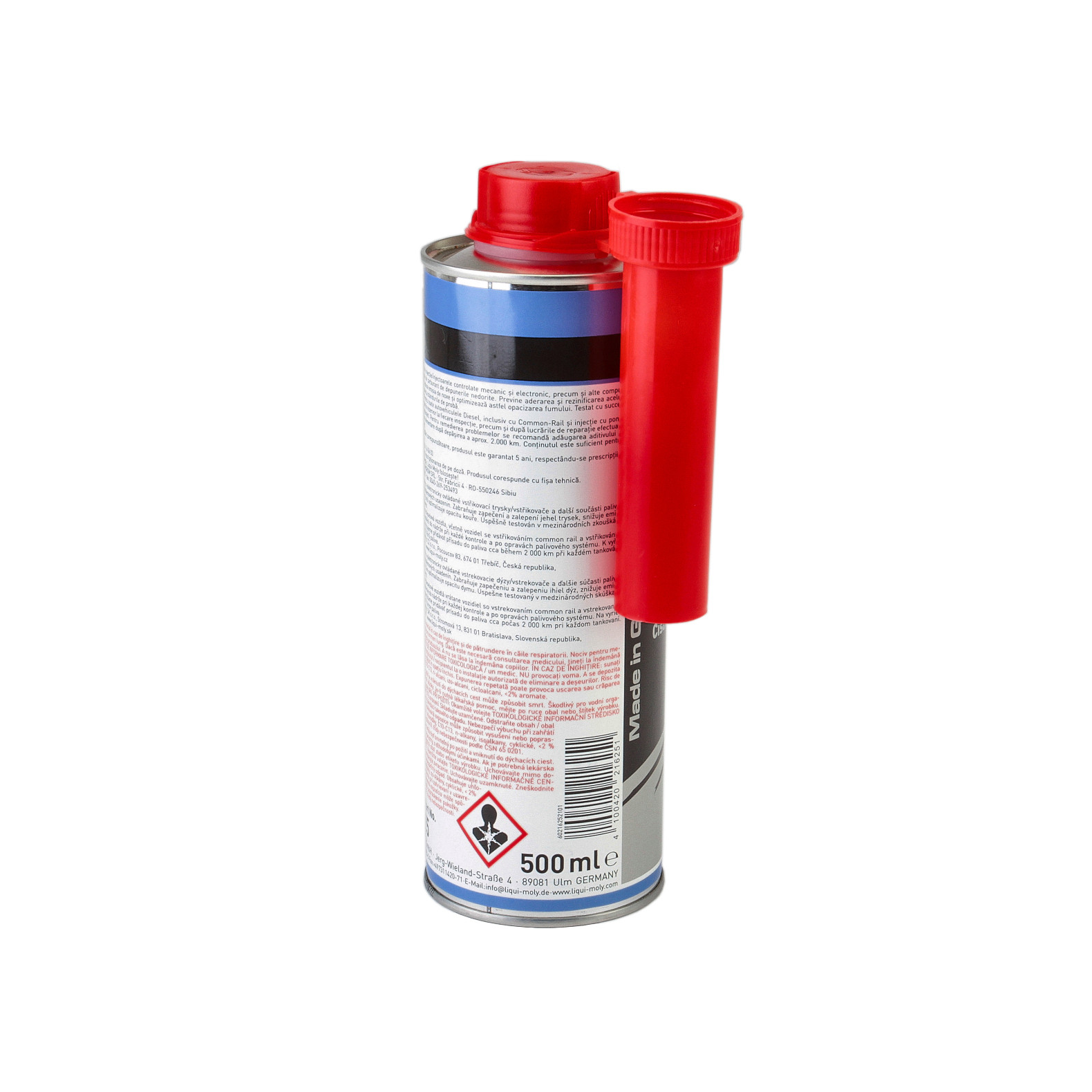 Reduce emisia de noxe şi optimizează astfel opacizarea fumului înainte de verificarea gazelor de eşapament. Testat cu succes în teste internaţionale la standurile de probă. Curăţă injectoarele, întregul sistem de alimentare cu carburant şi camerele de ardere de depunerile nedorite. Previne îmbâcsirea şi rezinificarea duzelor injectoarelor. Optimizează procesul de ardere. Astfel, motorul îşi redobândeşte puterea iniţială.