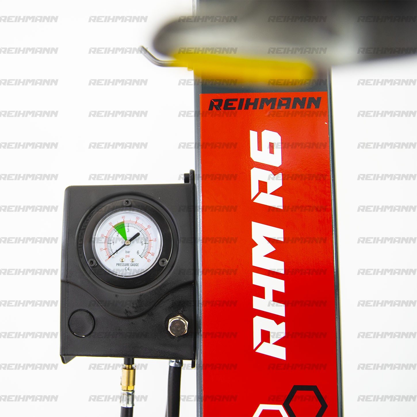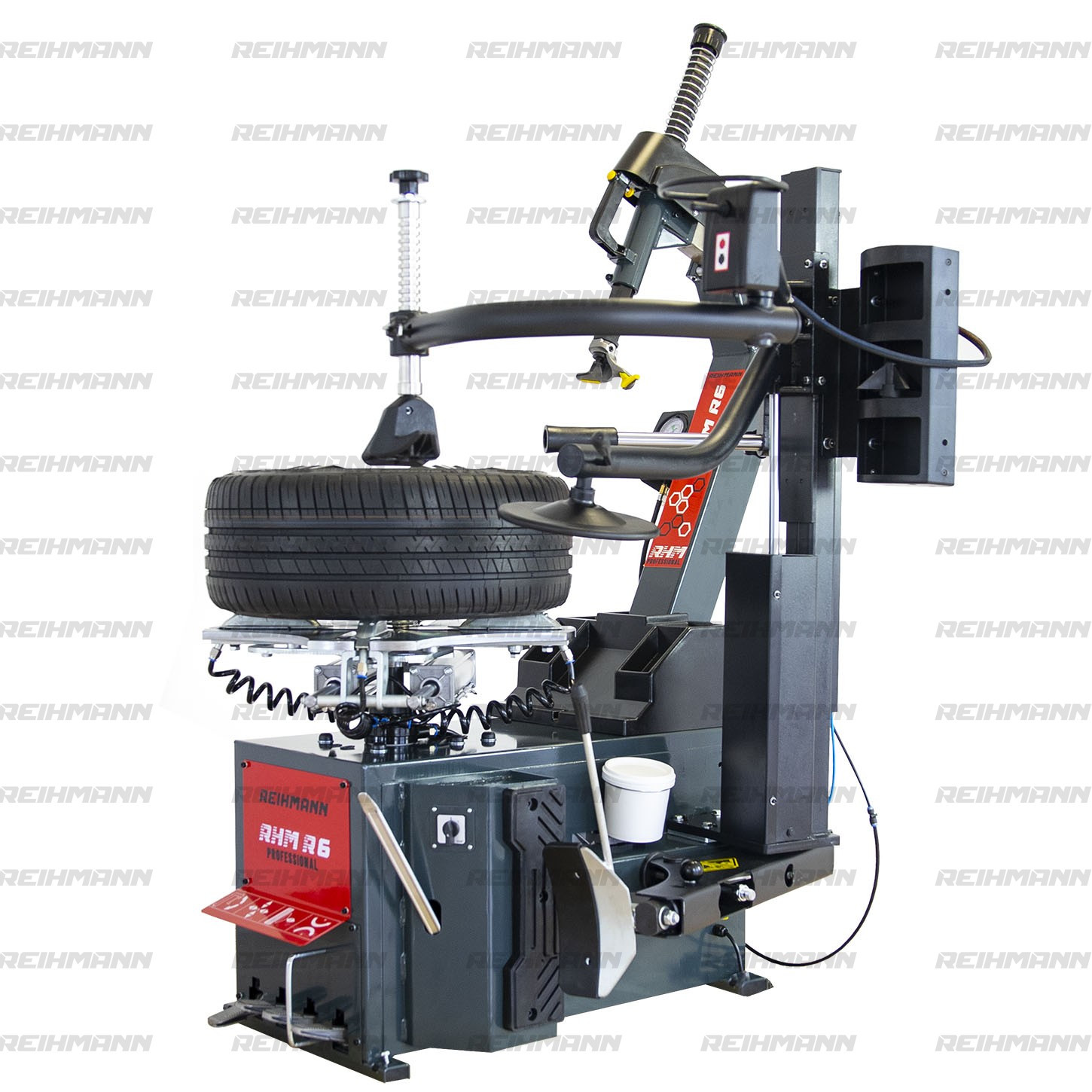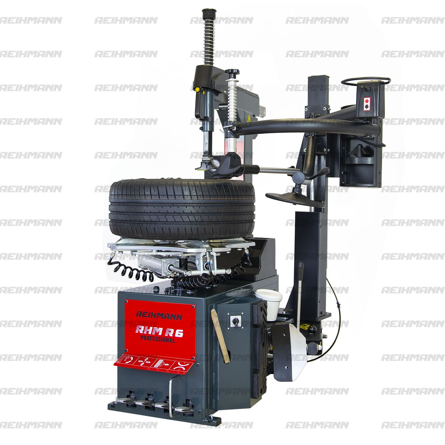 Masina dejantat roti RHM R6 cu brat ajutator pentru anvelope Run Flat aparat dejantat anvelope profesional. Reihmann RHM R6 este un aparat profesional având coloana rabatabilă pe spate acționată pneumatic de pe pedală. Brat ajutator RunFlat inclus, care este un accesoriu obligatoriu pentru toți cei care intenționează sa lucreze cu roți ce au o dimensiune mai mare de 17”. Capacitate de prindere jante 10”-24” inch destinată vulcanizarilor cu un flux mare de lucru, compatibilă cu toate modelele de autoturisme, SUV-uri, microbuze, camionete cu axa dubla. Pachetul include set protectie jante aluminiu, levier si pistol manometru presiune.