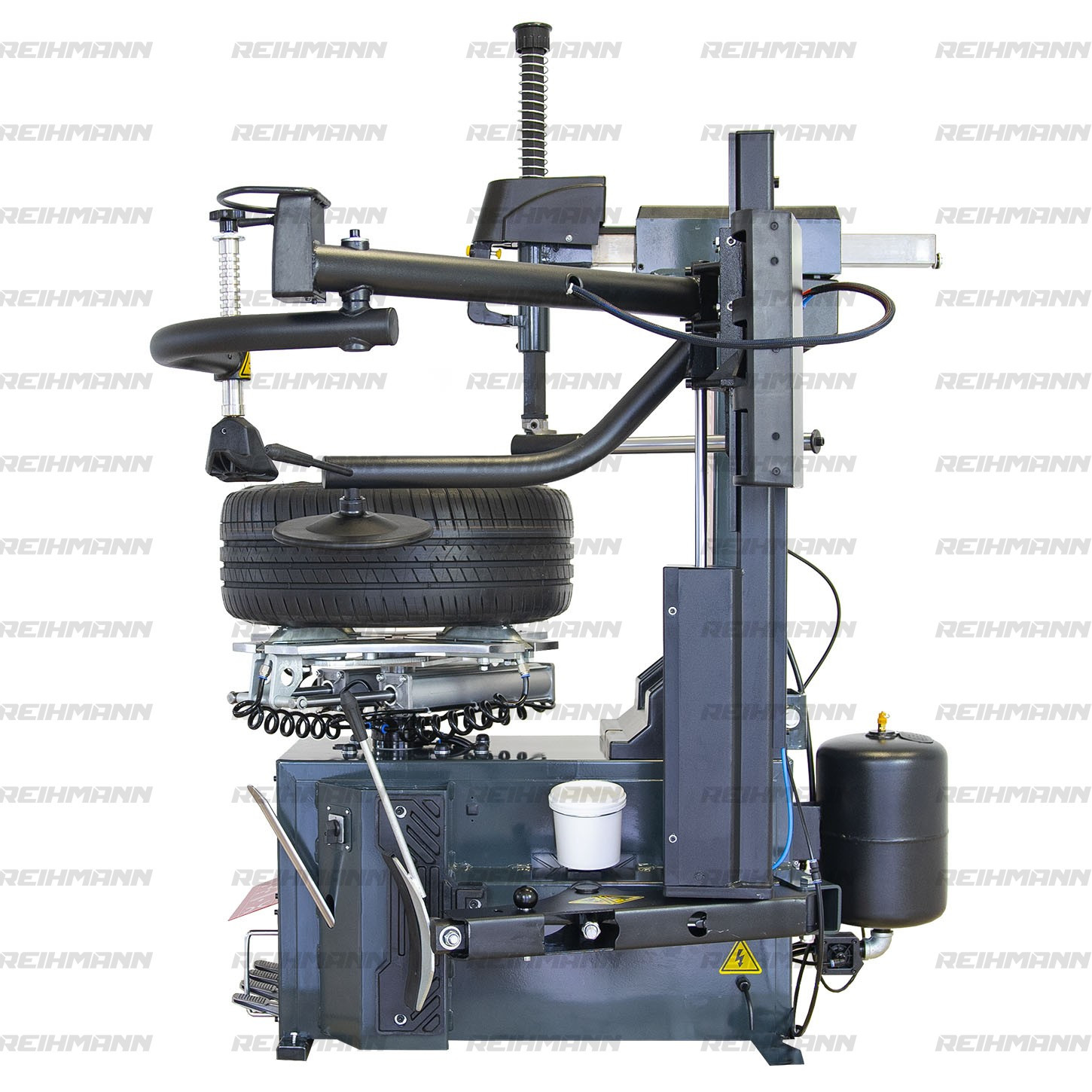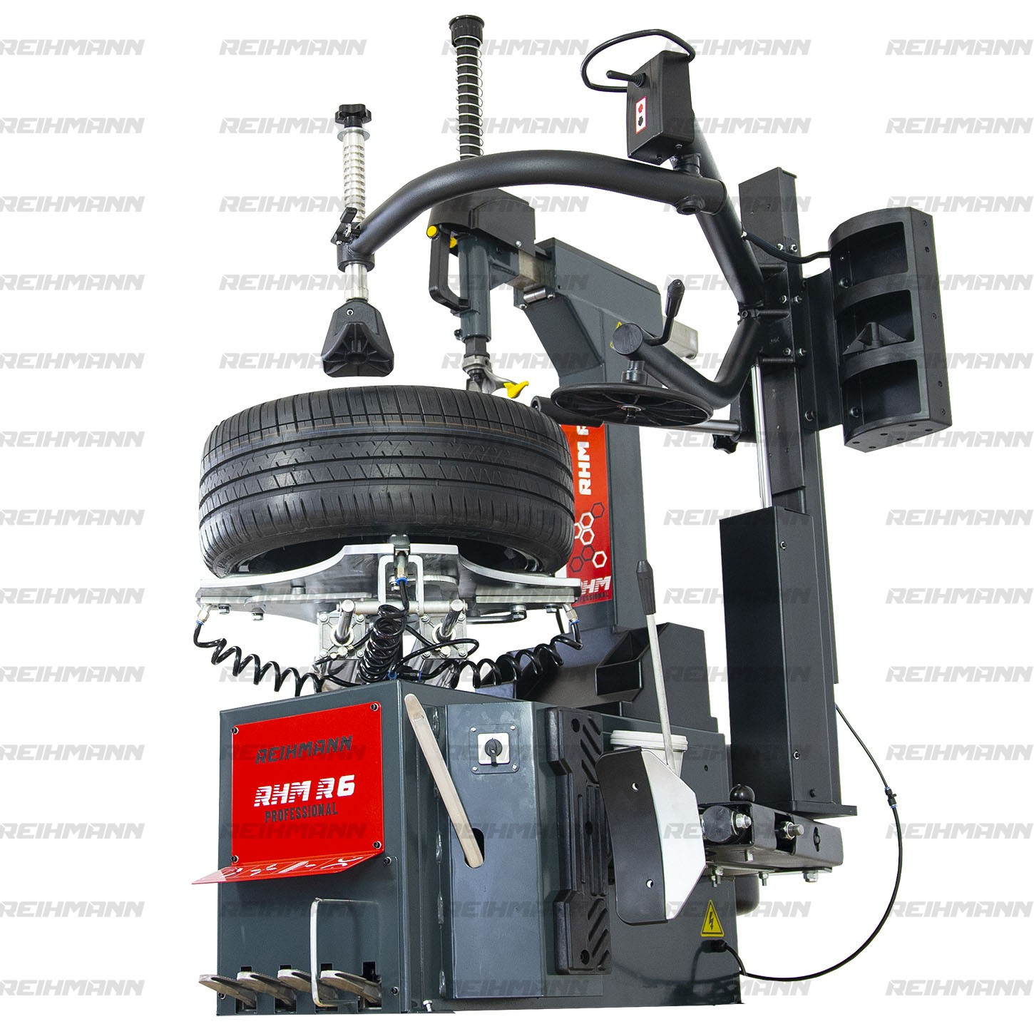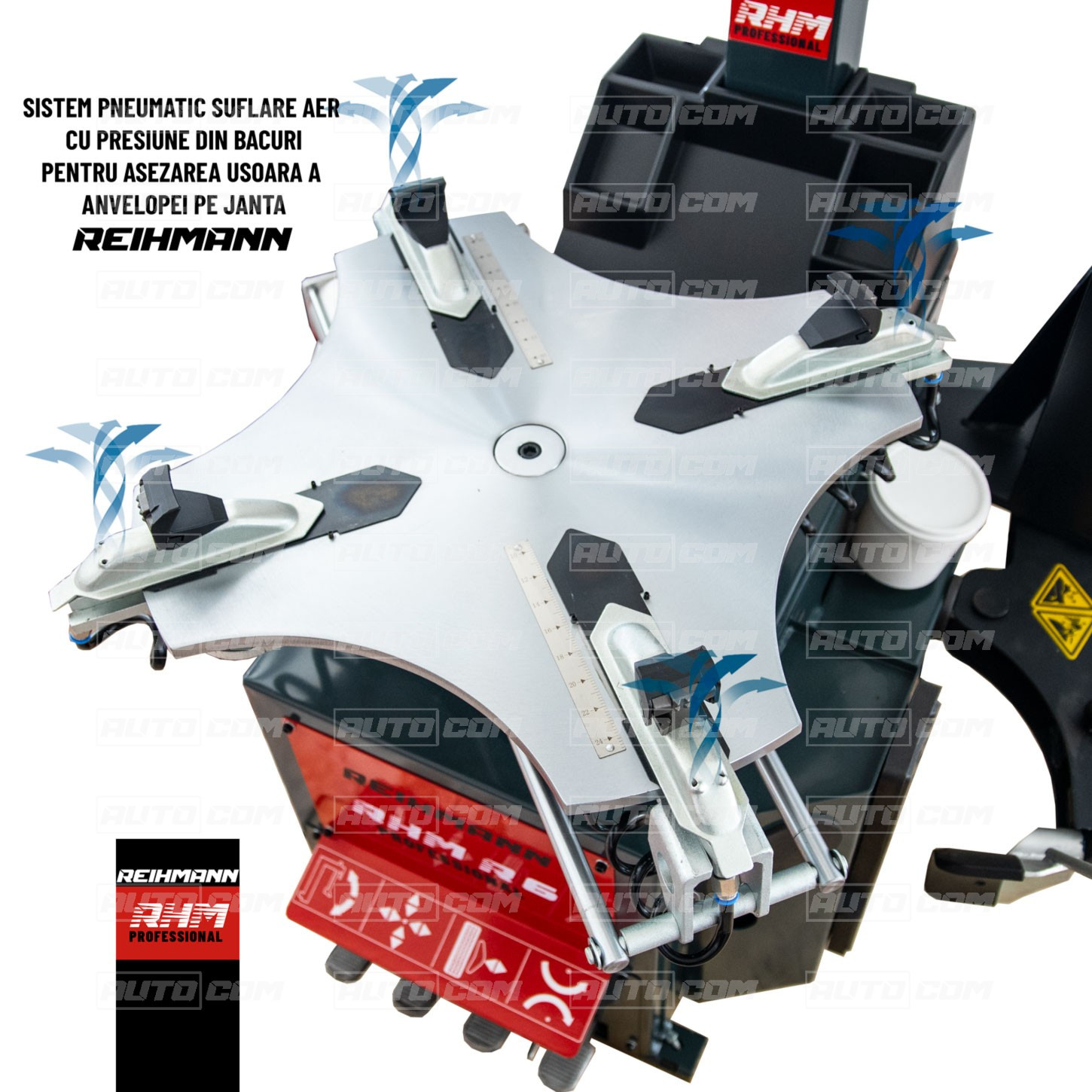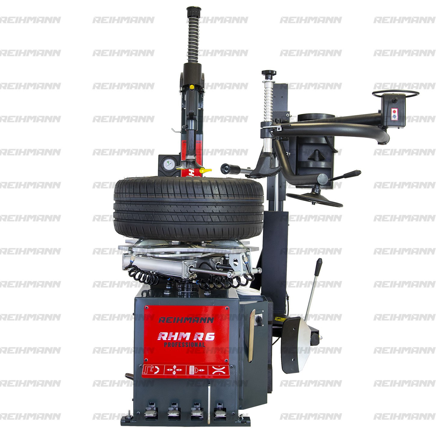 Masina dejantat roti RHM R6 cu brat ajutator pentru anvelope Run Flat aparat dejantat anvelope profesional. Reihmann RHM R6 este un aparat profesional având coloana rabatabilă pe spate acționată pneumatic de pe pedală. Brat ajutator RunFlat inclus, care este un accesoriu obligatoriu pentru toți cei care intenționează sa lucreze cu roți ce au o dimensiune mai mare de 17”. Capacitate de prindere jante 10”-24” inch destinată vulcanizarilor cu un flux mare de lucru, compatibilă cu toate modelele de autoturisme, SUV-uri, microbuze, camionete cu axa dubla. Pachetul include set protectie jante aluminiu, levier si pistol manometru presiune.