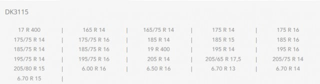Anvelopă compatibilă: 165 R14, 165/75 R14, 17 R400, 175 R14, 175 R16, 175/75 R14, 175/75 R16, 185 R14, 185 R15, 185 R15, 185 R118,/ 75 R16, 175/75 R14 R400, 195 R14, 195 R16, 195/75 R14, 195/75 R16, 205 R14, 205/65 R17.5, 205/75 R14, 205/80 R15, 6.00 R16, R16, R16, R16. 6,70 R15