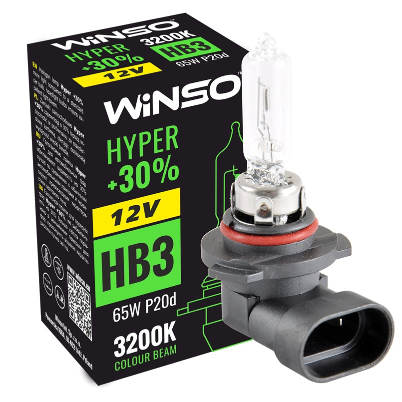 Bec Halogen Winso Hyper +30% HB3 – 12V, 65W P20d ● 3200K