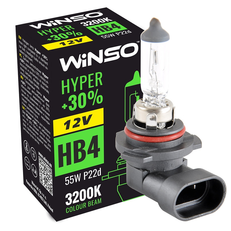 Bec Halogen Winso Hyper +30% HB4 – 12V, 55W P22d ● 3200K