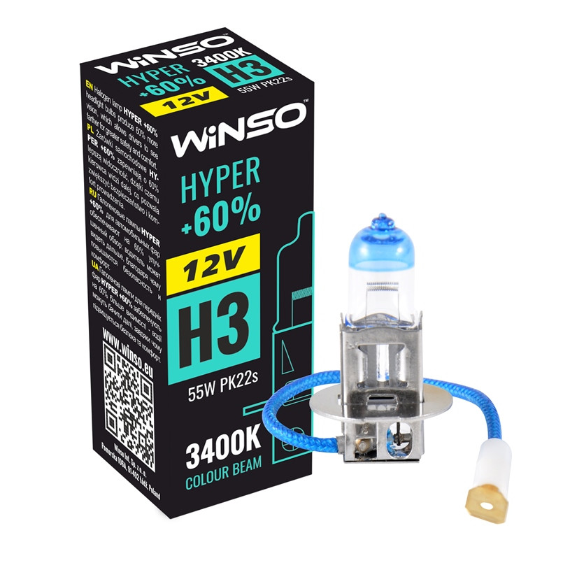 Bec Halogen Winso Hyper +60% H3 – 12V, 55W PK22s ● 3400K