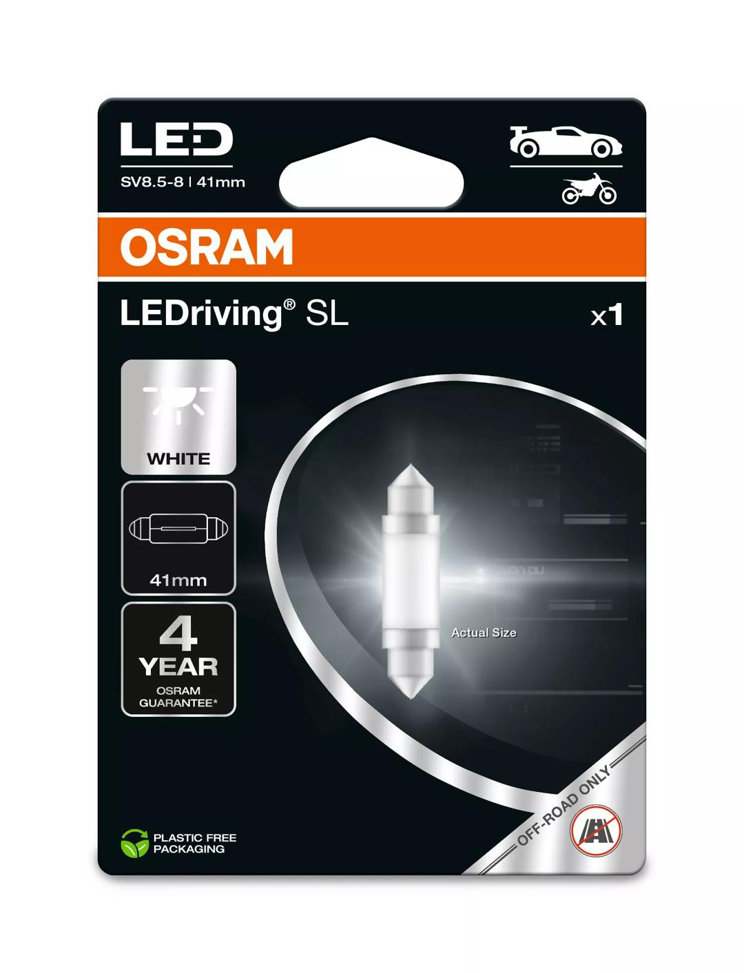 Lămpile de schimb LEDriving SL C5W oferă o lumină modernă și intensă, cu o temperatură de culoare de până la 6.000 Kelvin. Aceste lămpi de schimb sunt potrivite pentru toate bazele convenționale de lămpi C5W. În comparație cu lămpile standard, aceste lămpi LED retrofit consumă cu până la 80% mai puțină energie. OSRAM oferă o garanție de 4 ani pentru aceste lămpi LEDriving SL. Aceste produse nu au aprobare ECE și nu trebuie utilizate pe drumurile publice în nicio aplicație exterioară. Utilizarea drumurilor publice duce la anularea licenței de funcționare și la pierderea acoperirii de asigurare. Mai multe țări interzic vânzarea și utilizarea acestor produse. Vă rugăm să contactați distribuitorul local pentru informații suplimentare.
