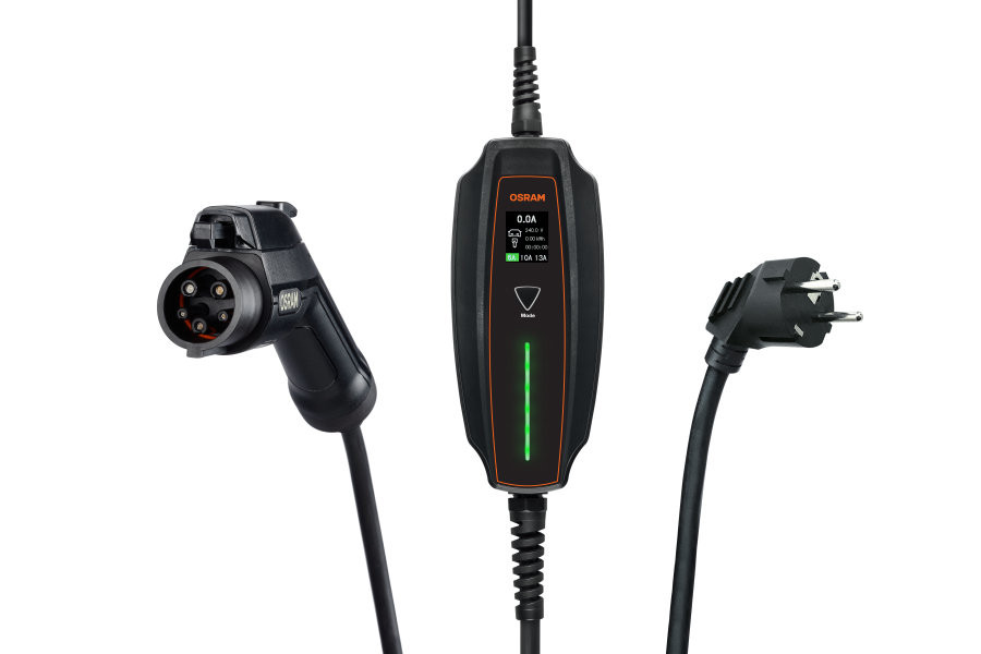 Descoperiți lumea conducerii electrice cu OSRAM. Încărcați-vă vehiculul complet electric sau hibrid plug-in de tip 2 la orice stație de încărcare compatibilă echipată cu o conexiune de tip 2 de 32A (trifazic). Cablul de încărcare este echipat cu mânere ergonomice pentru o manevrare optimă și are o lungime a cablului de 5 metri. Este potrivit pentru utilizare la stațiile publice de încărcare și acasă. In plus, cablurile de incarcare sunt echipate cu capace de protectie la praf si testate pentru rezistenta la apa conform IP65 si rezistenta la socuri conform IK10. Chiar și atunci când sunt conectate, punctele de contact electrice sunt protejate împotriva pătrunderii prafului și stropilor de apă în conformitate cu IP65 și IK10. Livrarea include, de asemenea, o geantă de depozitare durabilă și compactă pentru a depozita îngrijit cablul după încărcare. În plus,