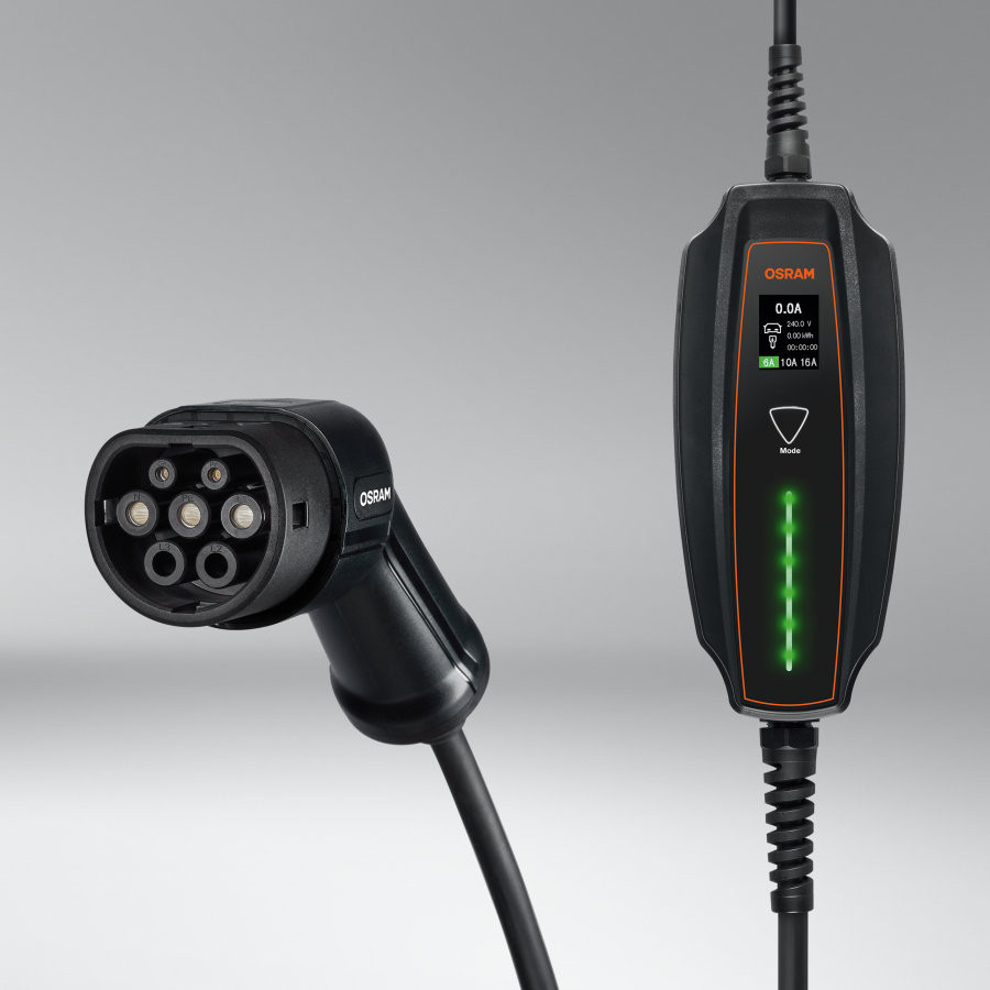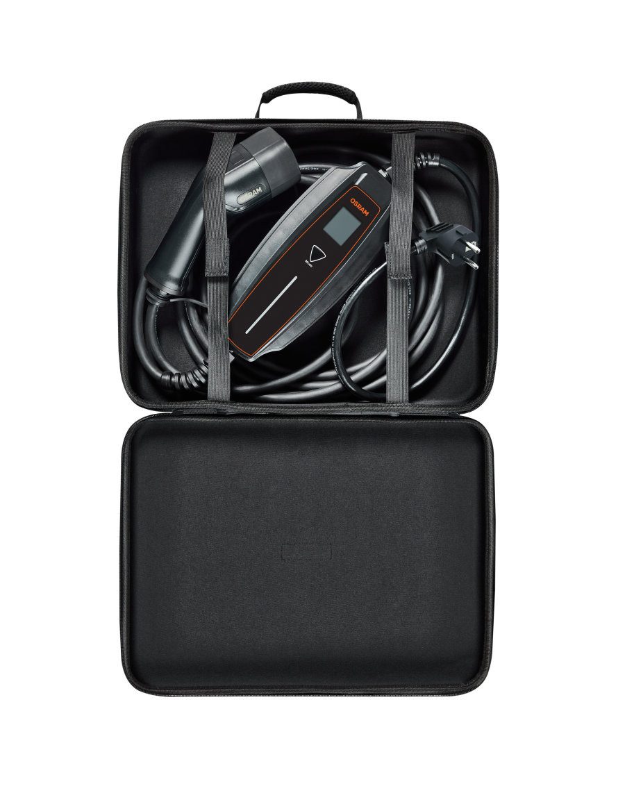 Descoperiți lumea conducerii electrice cu OSRAM. Încărcați-vă vehiculul complet electric sau hibrid de tip 2 cu priză de la orice unitate sau stație de încărcare de 32 A (1 fază) dotată cu un punct de conectare de tip 2. Cablul de încărcare este echipat cu mânere ergonomice pentru o manevrare optimă și are o lungime a cablului de 5 metri. Este potrivit pentru utilizare la stațiile publice de încărcare și acasă. In plus, cablurile de incarcare sunt echipate cu capace de protectie la praf si testate pentru rezistenta la apa conform IP65 si rezistenta la socuri conform IK10. Chiar și atunci când sunt conectate, punctele de contact electrice sunt protejate împotriva pătrunderii prafului și stropilor de apă în conformitate cu IP65 și IK10. Livrarea include, de asemenea, o geantă de depozitare durabilă și compactă pentru a depozita îngrijit cablul după încărcare. În plus,