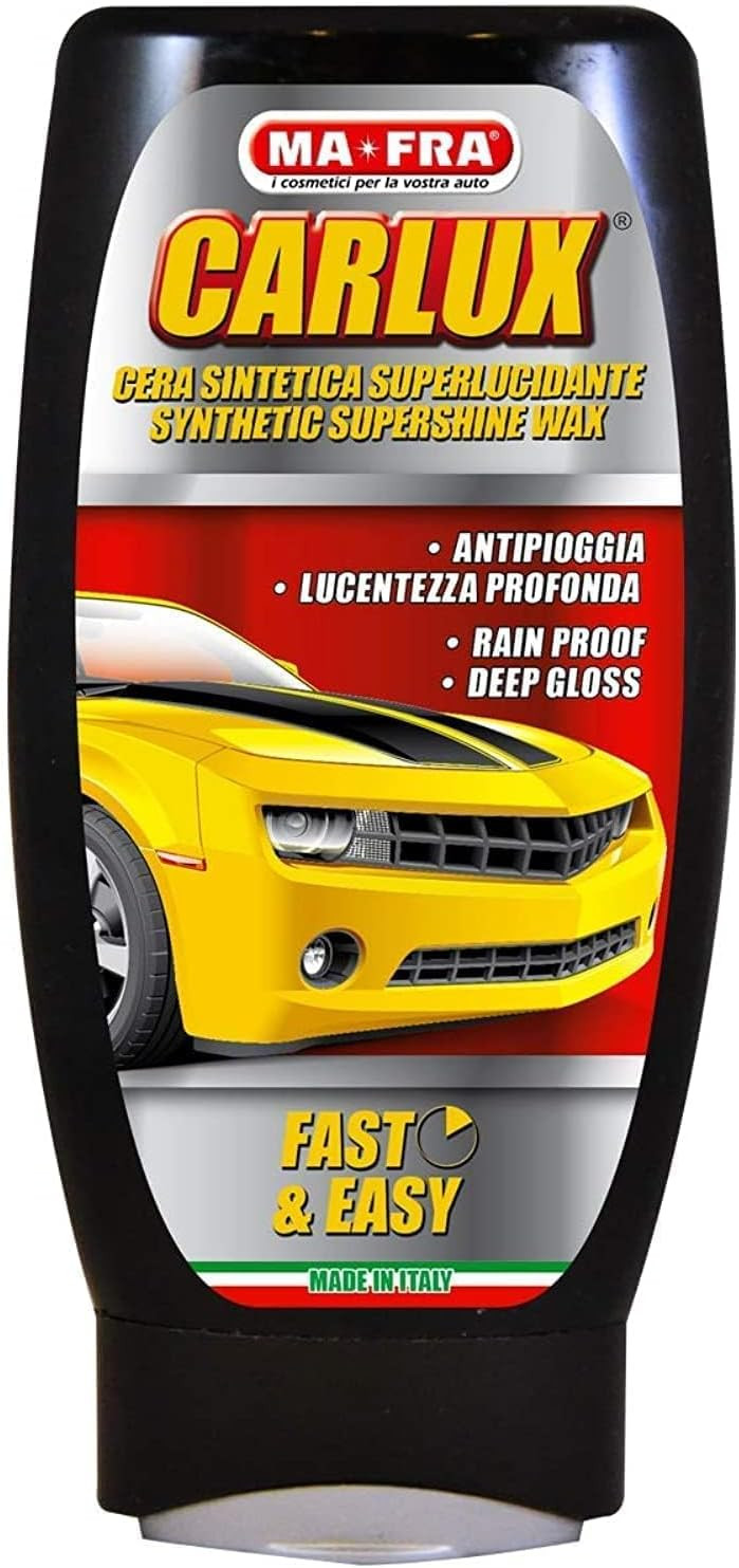Carlux este etanșantul auto de protecție Mafra care vă permite să lustruiți mașina și să protejați toate tipurile de caroserie, ușor și într-un timp scurt. O ceara auto care este o adevarata bariera pentru murdarie, praf si impuritati: un scut capabil sa se reactiveze dupa fiecare spalare pentru a proteja si lustrui masina. Formula sa, pe baza de SILOXANE, confera o stralucire cu adevarat de neegalat, un plus de stralucire si o mare profunzime de culoare, in special pentru masinile negre si actiunea sa dureaza in timp fara a lasa dungi sau pete pe suprafetele tratate. Produsul se aplică cu ușurință și se întinde pe caroserie, reducând timpul de clătire și uscare după spălare, creând imediat un efect mătăsos asupra vopselei și o barieră anti-depunere care permite alunecarea murdăriei și smogului: acest efect va rezista și la numeroase și repetate. spalaturi.