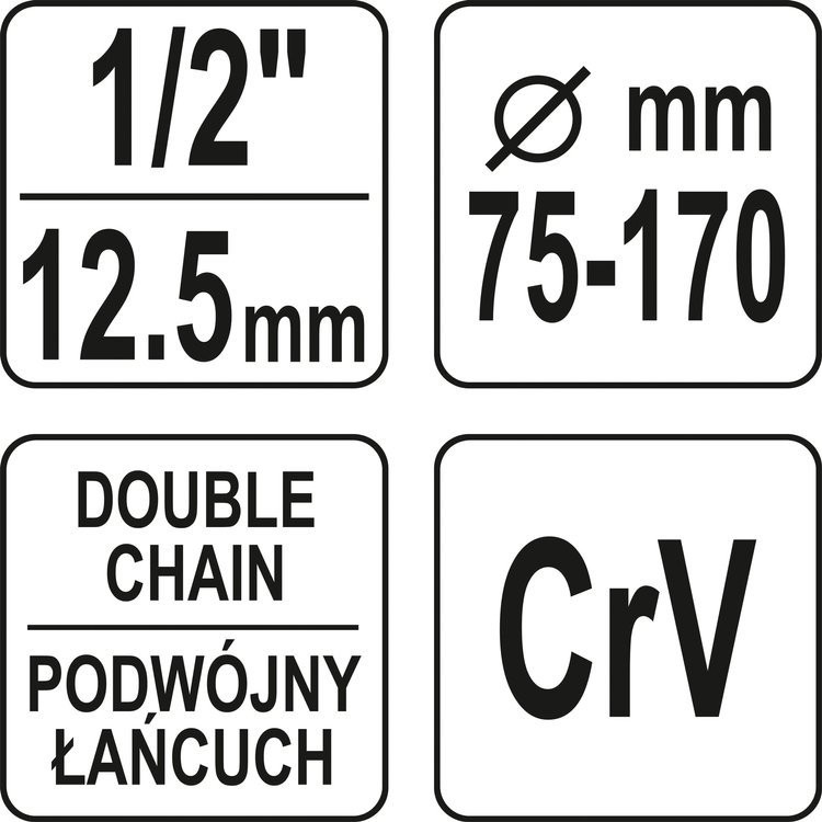 Cheie cu lanț dublu, proiectată pentru filtre de ulei cu diametre de la 75-170 mm.