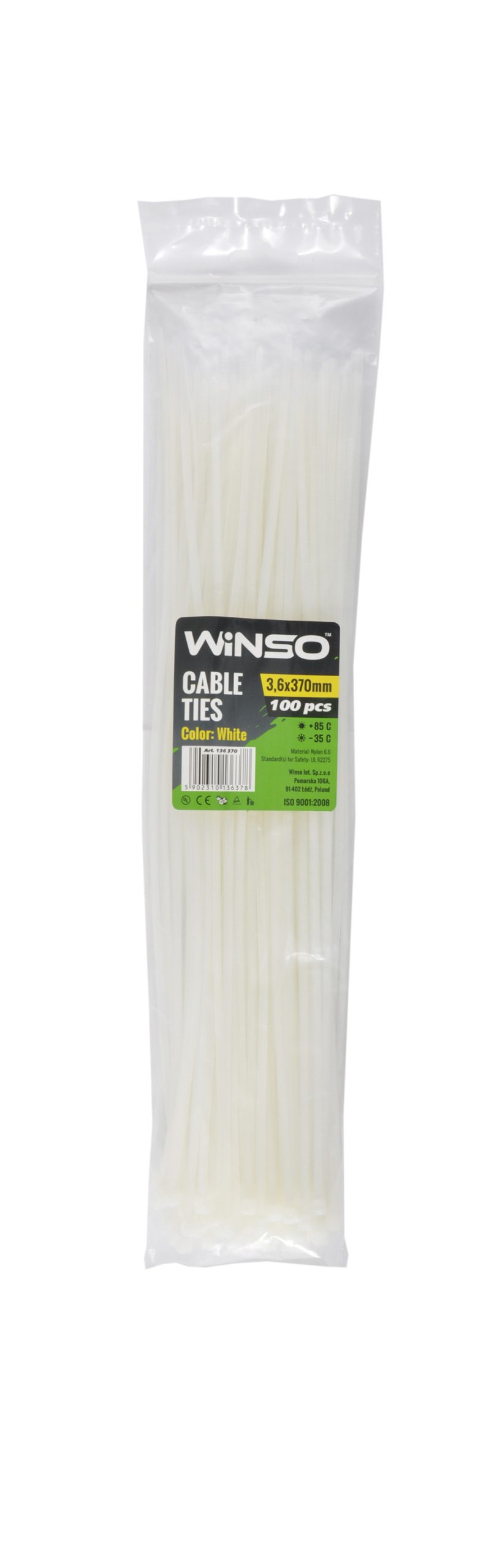 Legăturile de cablu Winso sunt utilizate pe scară largă atât în ​​producție, cât și în gospodărie, dar principalul domeniu de utilizare este ingineria electrică. Legăturile de cablu sunt un instrument economic, rapid și de înaltă calitate pentru legarea, fixarea și fixarea cablurilor, firelor, capacelor de roți, bannere publicitare și o serie de alte lucruri. Nailonul 6,6 din care sunt fabricate legăturile de cablu, se caracterizează prin coeficient scăzut de frecare, insolubilitate cu majoritatea solvenților organici, rezistent la apă sărată, soluții slabe acide. Nylonul 6,6 rezistă perfect la sarcini grele și deteriorări la o temperatură de peste 120°C, este stabil împotriva radiațiilor UV. Capacitatea de încărcare, pe care o pot rezista colierele, depinde direct de lățimea curelei de prindere.
