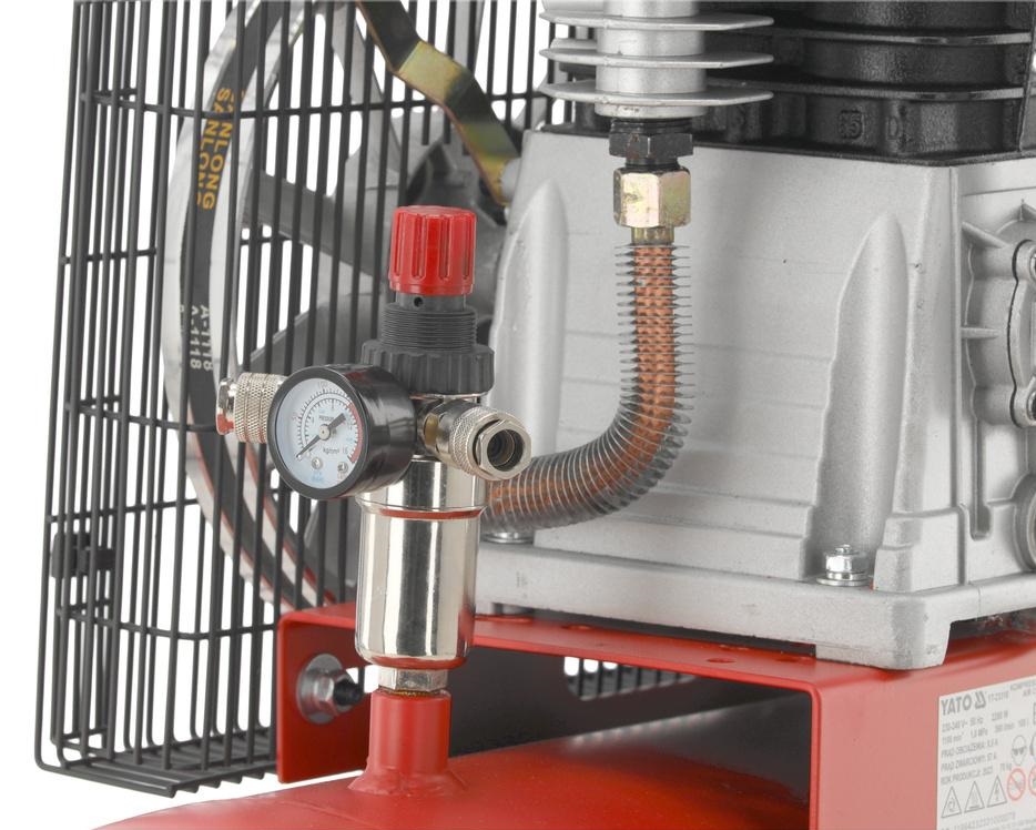 Compresor cu ulei cu două racorduri și reglare a presiunii. Este folosit pentru acționarea dispozitivelor cu aer comprimat. Este un sprijin neprețuit în industrie, construcții, ateliere și agricultură.