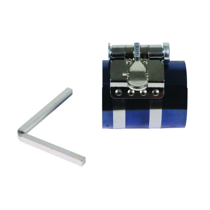 Această unealtă pentru compresorul segmenților de piston este necesară pentru instalarea pistoanelor în blocul cilindrilor. Compresorul se pliază în jurul pistonului, ținând segmenții în canelurile lor și permițând ansamblului piston-segment să alunece în alezaj fără a deteriora pistoanele sau segmenții.