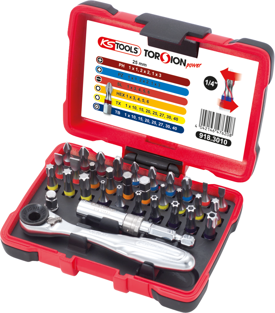 Cutia de biți Torsion Power conține un set de biți frezați foarte precis.