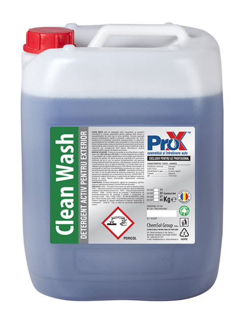 CLEAN WASH este un detergent activ, concentrat, super spumant, inclusiv la presiune înaltă și acțiune intensă de degresare pentru spălarea autovehiculelor de orice tip cu jet de apă la presiune înaltă, în orice anotimp. Formula avansată permite îndepărtarea rapidă și eficientă a depunerilor din trafic, conferă luciu și protecție caroseriilor autovehiculelor, nu pătează și nu lasă depuneri pe suprafețe. Este compatibil cu orice sursă de apă. Diluat corespunzator, produsul dizolvă și emulsionează în profunzime depunerile de uleiuri, grasimi, fum, insecte și alte murdării de origine organică sau anorganică, fără efecte dăunătoare asupra componentelor vopsite, cromate, din plastic sau cauciuc.