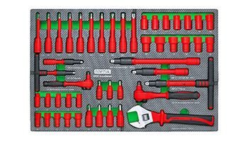 Cărucior pentru scule cu 7 sertare cu sortiment de scule izolate VDE: