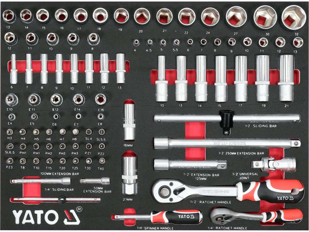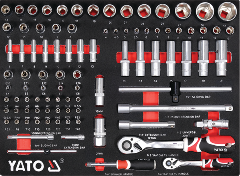 În trei dintre cele șapte sertare există până la 157 de unelte profesionale în inserții din spumă EVA.