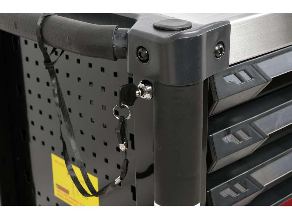 Noul dulap de service cu scule YT-55308 este un design unic cu un mecanism de blocare care vă permite să deschideți mai mult de un sertar în același timp.