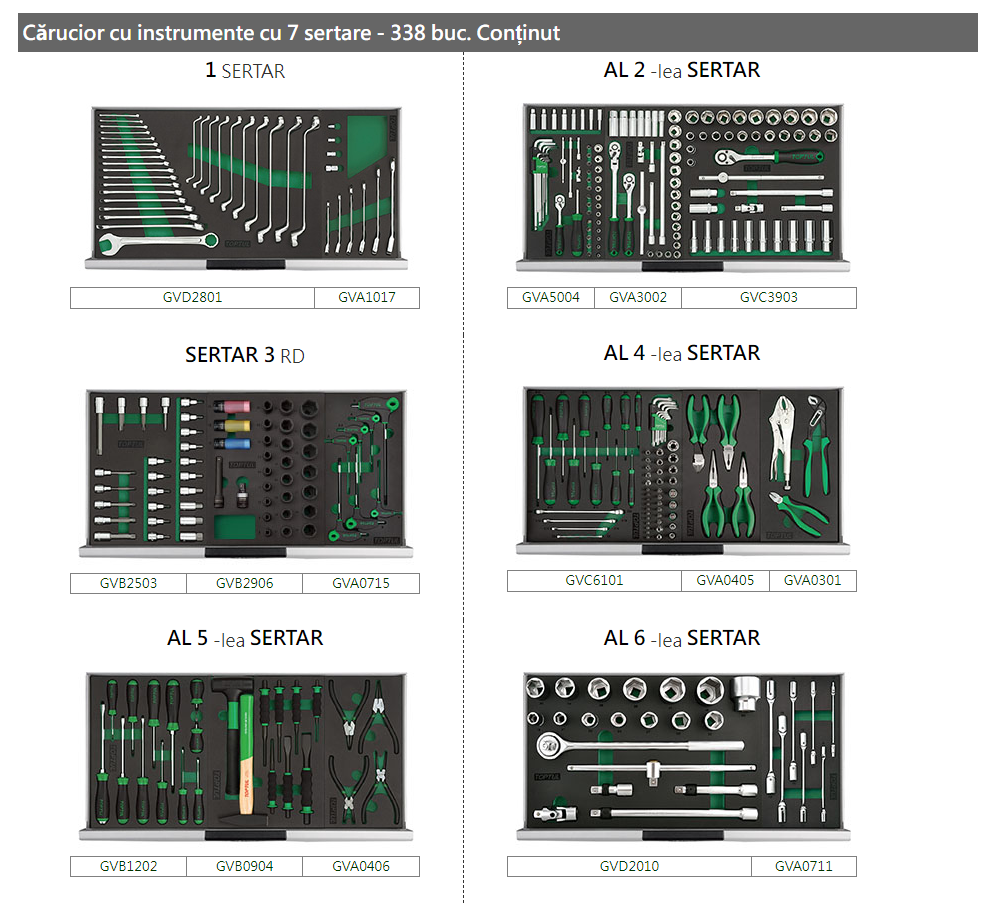 Dulap Scule echipat cu 338 buc ● 7 sertare