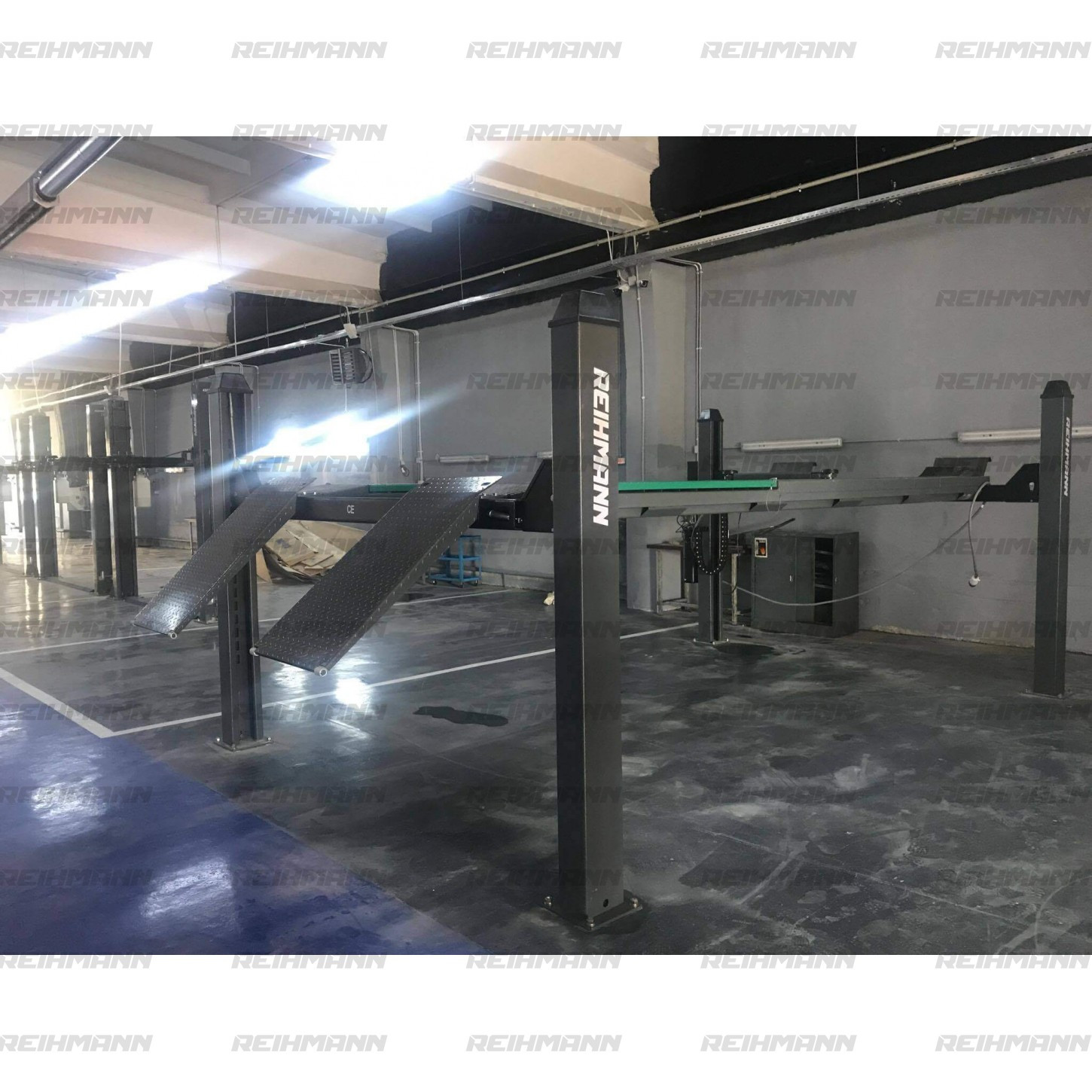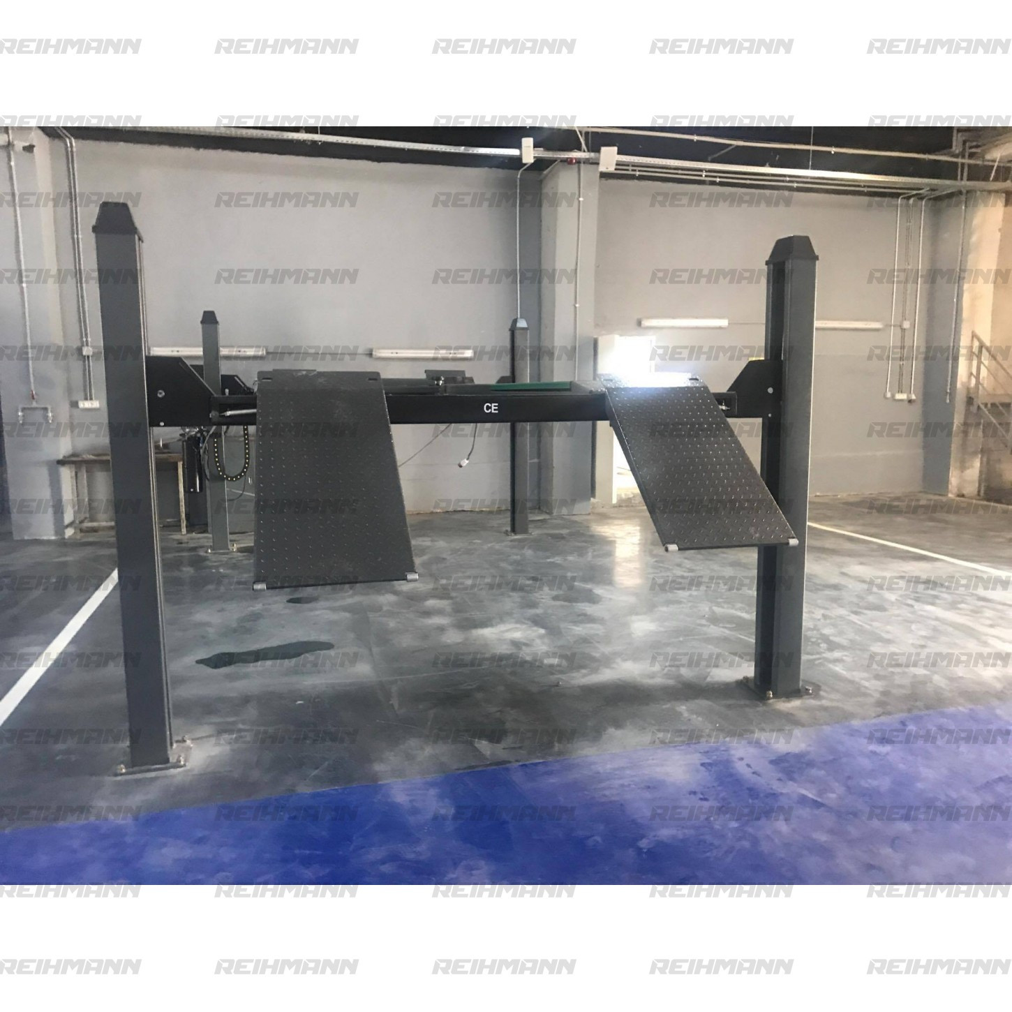 Elevator auto cu 4 coloane electro-hidraulic proiectat special pentru geometria rotilor, lucrari de intretinere si reparatii auto.