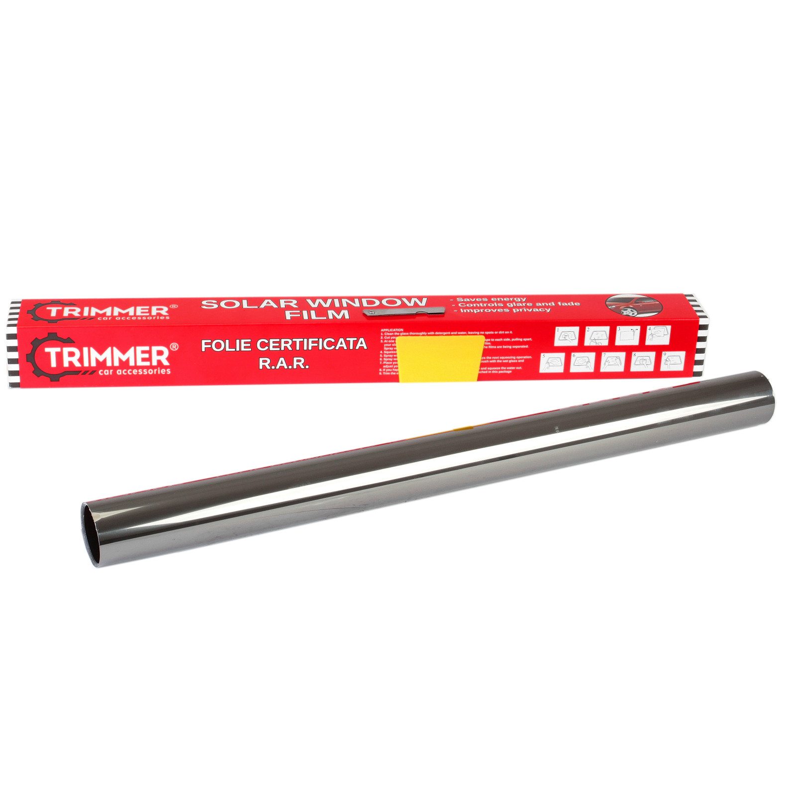 Certificat de garantie si declaratie de conformitate pe o parte, instructiuni de montare a foliilor pe verso.