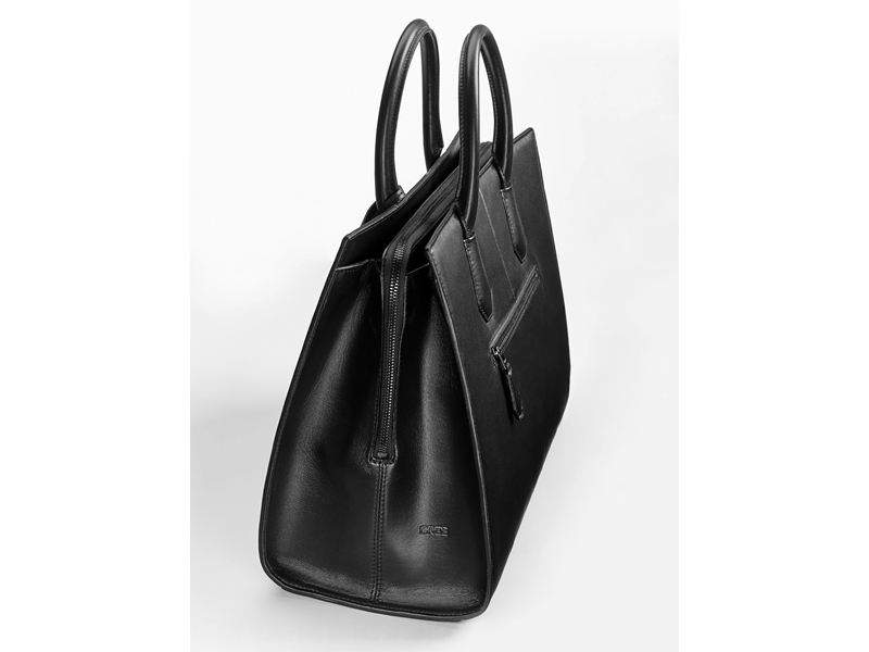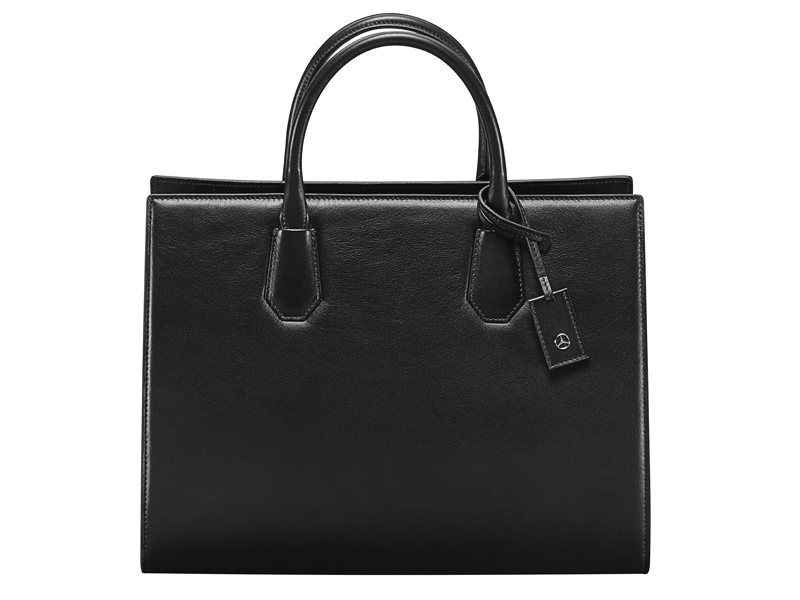 Geanta de culoarea neagra. Din piele. Cu compartiment pentru laptop si alte compartimente mai mici. De la Bree pentru Mercedes-Benz. Dimensiuni aprox. 37×18×26 cm.