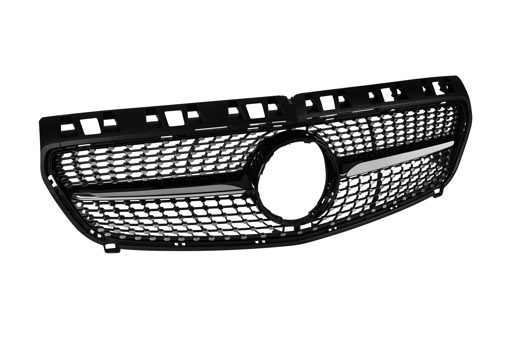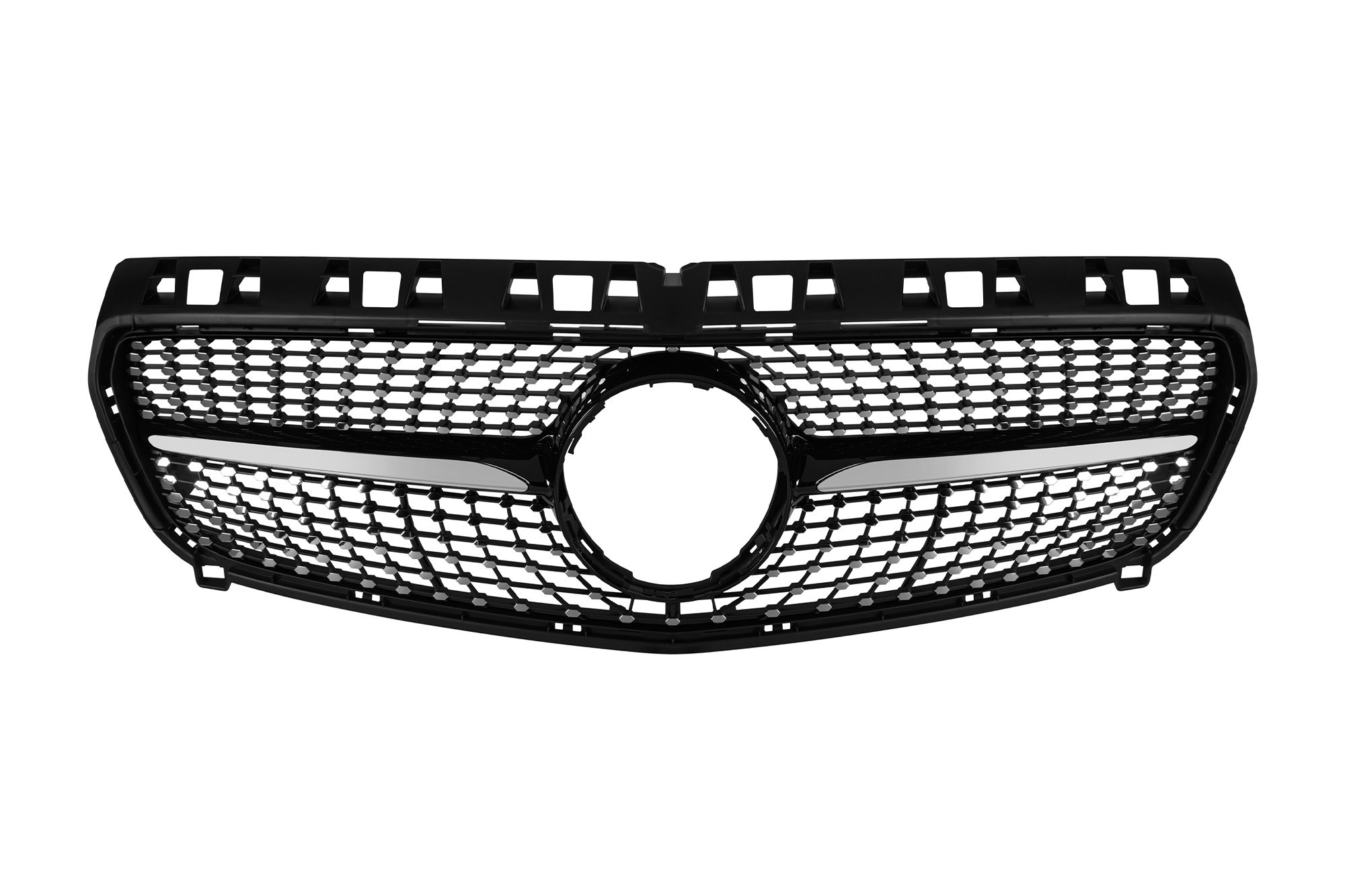 Grila de radiator Diamond este compatibilă cu modelul Mercedes A-Class W176 fabricat între anii 2013 și 2015. Acest model de grilă este special conceput pentru versiunile echipate cu pachetul AMG sau bara frontală sport, oferind un aspect premium și modern, similar cu cel al modelelor superioare din gama Mercedes.