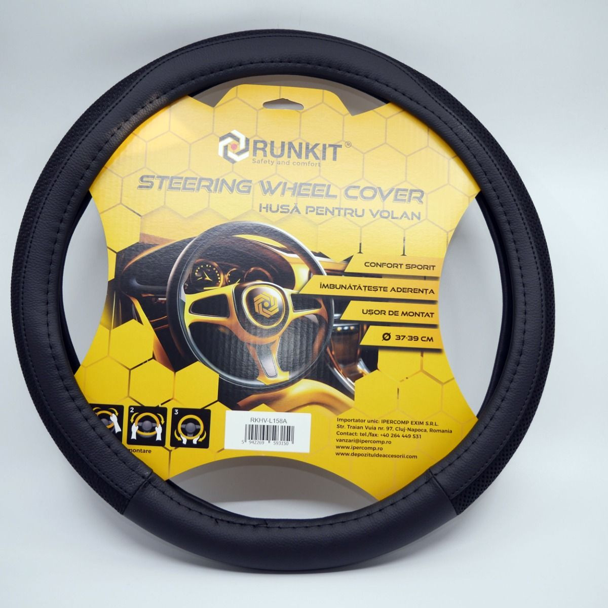 Husa de volan piele sintetica RUNKIT Negru (37-39 cm)