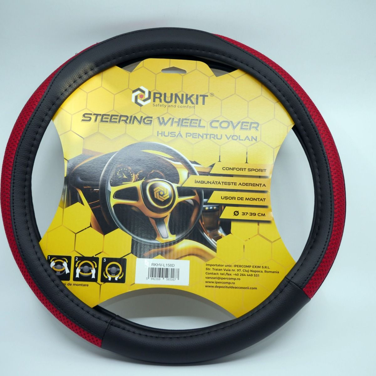 Husa de volan piele sintetica RUNKIT Negru/Rosu (37-39 cm)