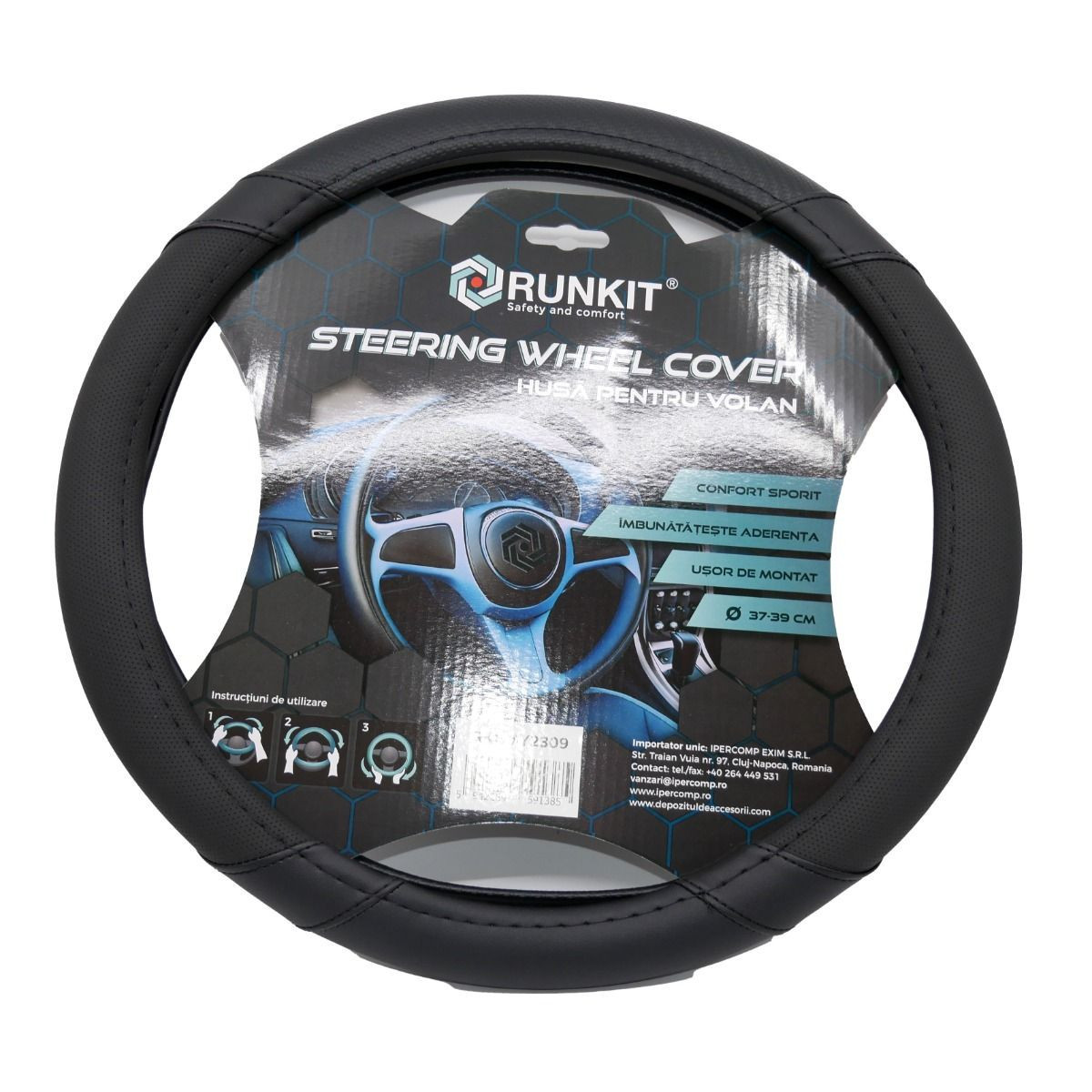 Husa volan piele sintetica Negru (37-39 CM)