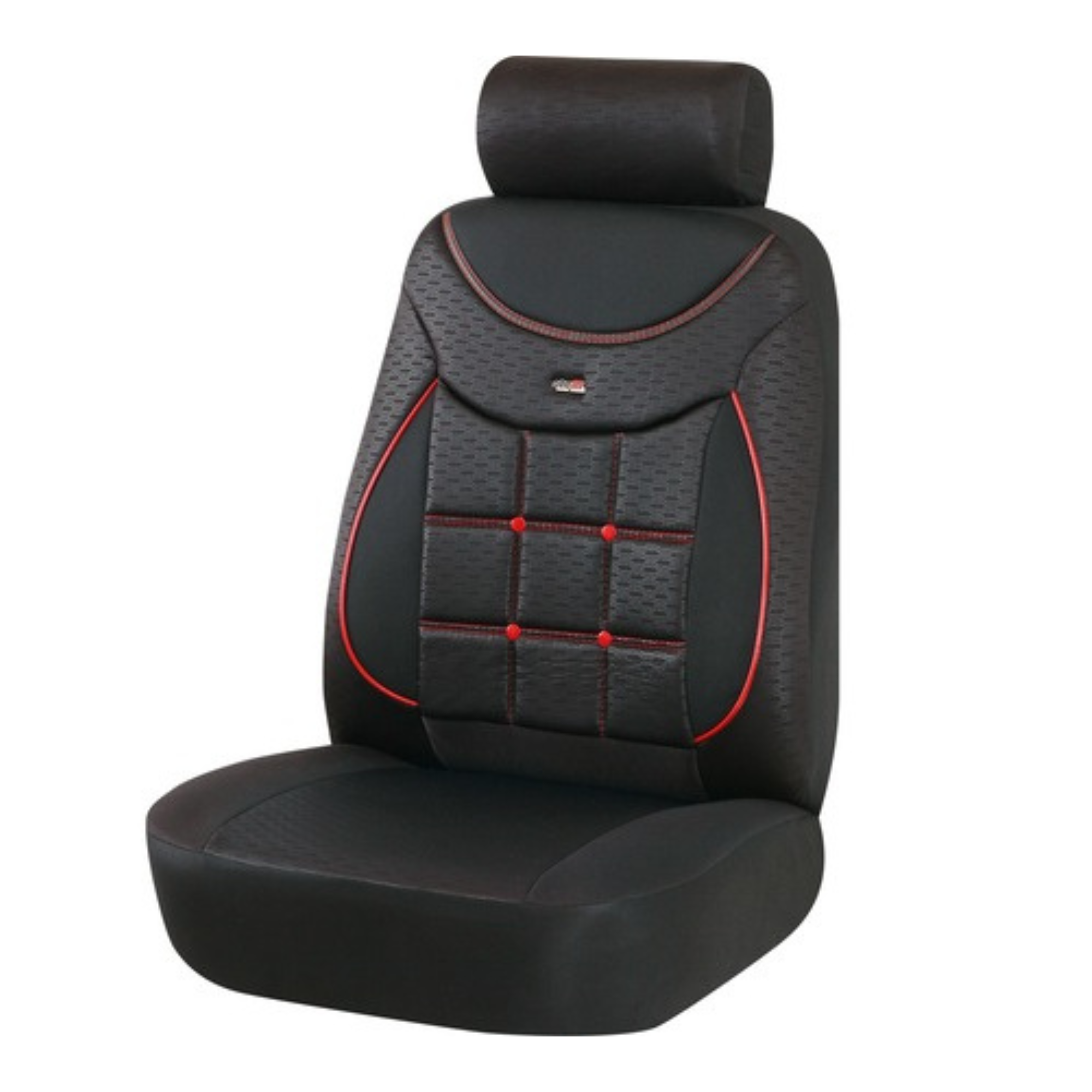 Huse scaun Otom Black/Red Silver 609 este compatibilă cu toate tipurile de autoturisme, ecologică, cu design ortopedic. Are cusătură specială, permite deschiderea airbag-urilor. Este confecționată din material sintetic, similar cu tapițeria originală. Husa de scaun se adaptează perfect la talia și spatele conducătorului auto, asigurând o senzație unică în timpul conducerii.