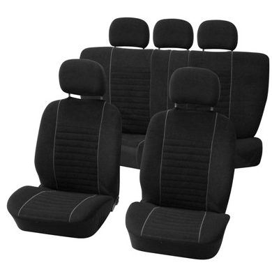 Contine 9 piese : doua huse scaune fata husa sezut spate husa bancheta spate si cinci huse pentru tetiere.