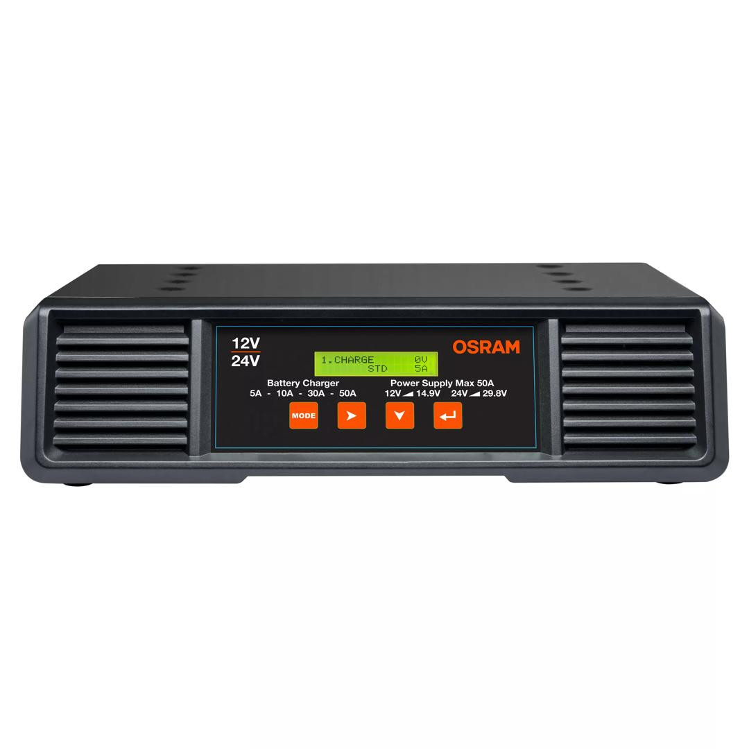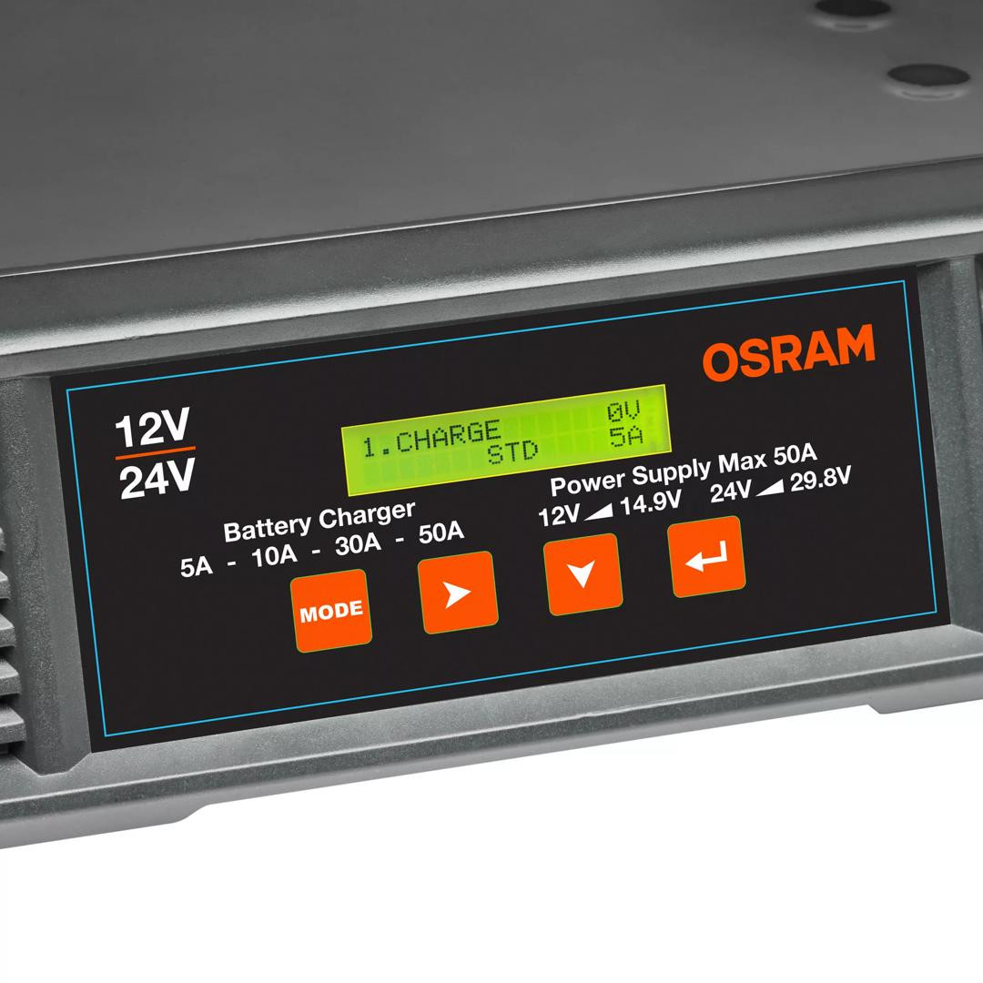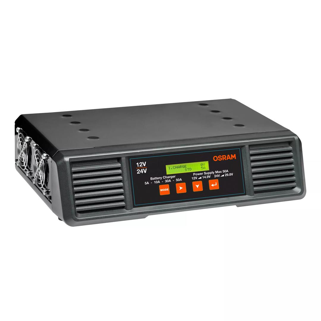 OSRAM BATTERYcharge PRO 50A este un încărcător de baterii profesional, inteligent, potrivit pentru o gamă largă de tipuri de baterii pentru vehicule de 12V și 24V. Ideal pentru utilizare atunci când diferite vehicule și chiar flote întregi trebuie întreținute, în special în ateliere sau showroom-uri profesionale.