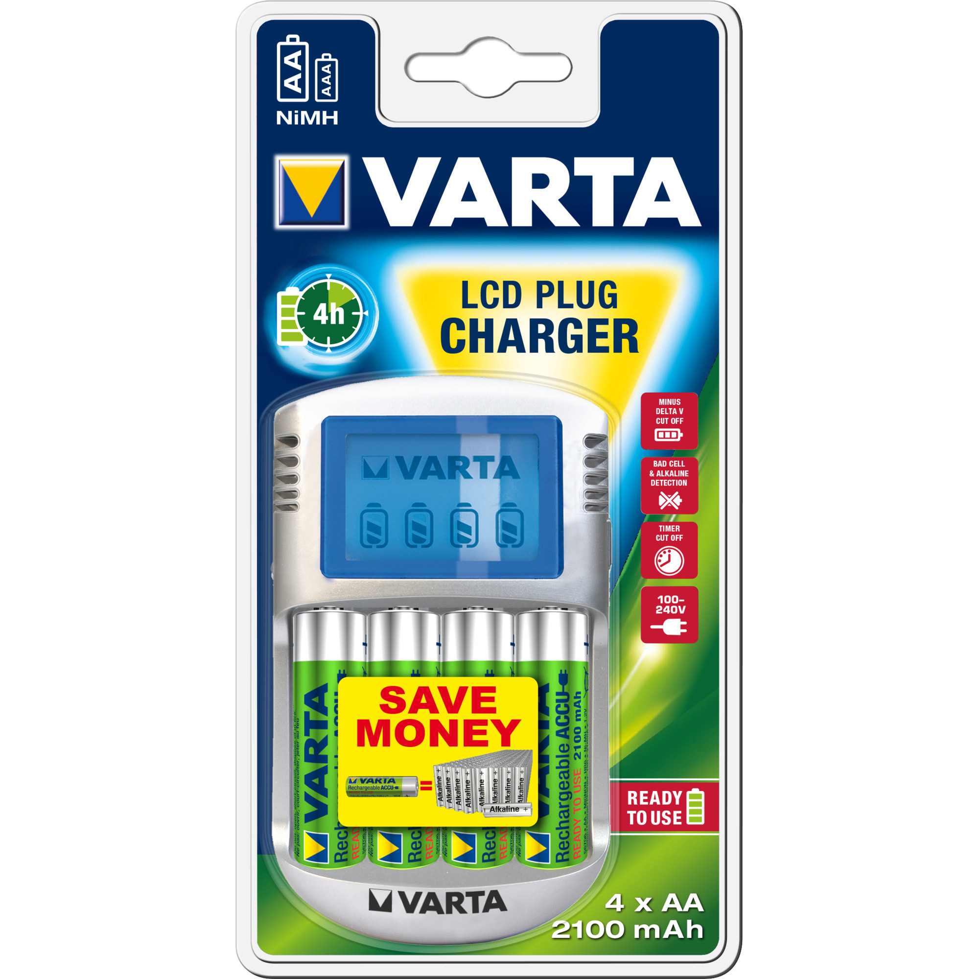 Incarcator Varta LCD 57670 + 4 acumulatori AA 2100 mAh, Silver