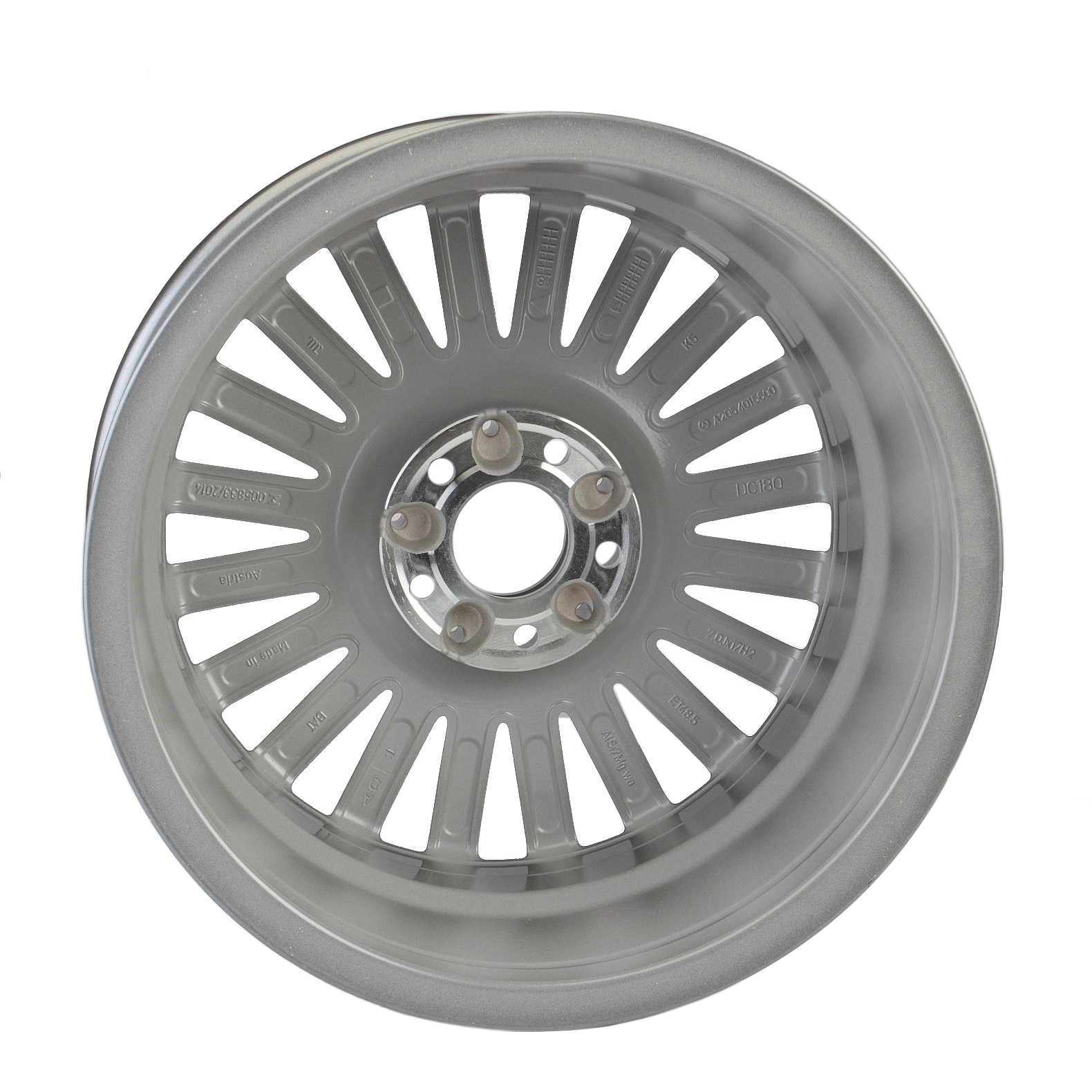 Jante din aliaj Mercedes- Benzul se livrează fără anvelope, fără capace centrale, fără capace de supapă, fără șuruburi de roată și fără încuietori de roți.