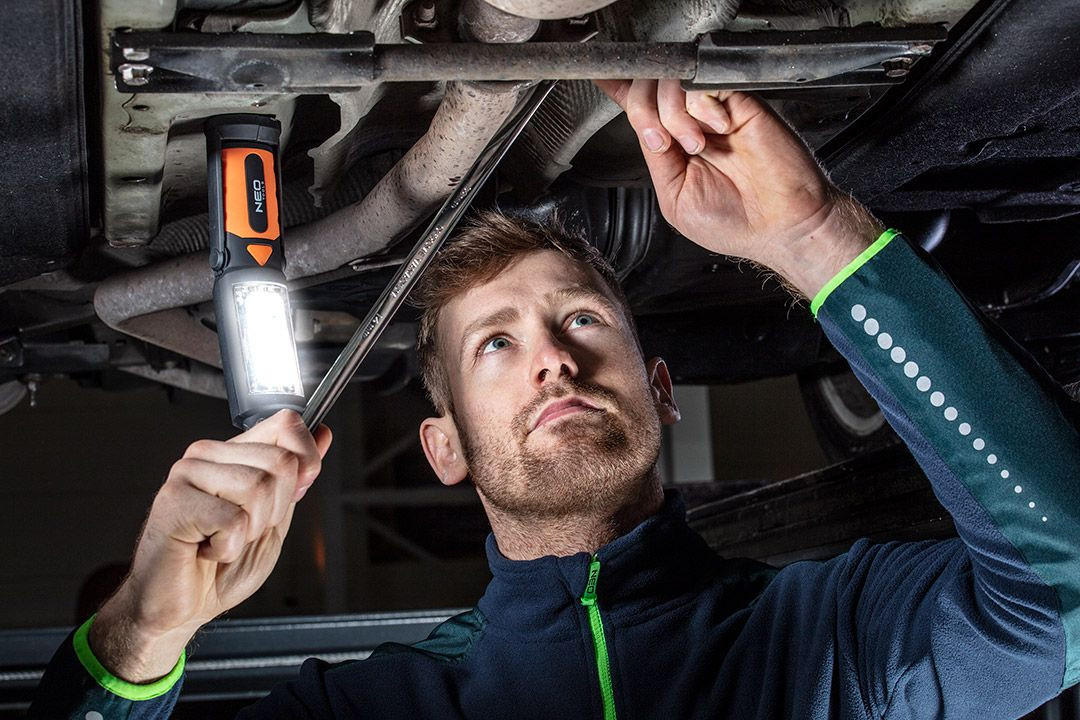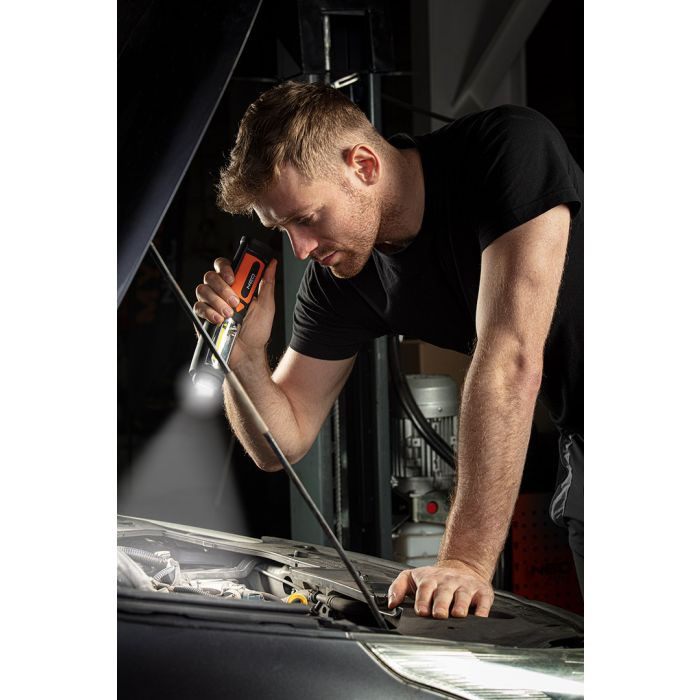 Lampă de atelier + lanternă cu baterii 2 în 1 Neo (ref. 99-042) este echipată cu LED-uri COB de 3 W și un flux luminos de 300 de lumeni. Are 2 funcții de iluminare: o lampă și o lanternă. Baza rotativă vă permite să înclinați lampa la unghiul dorit. Magnetul și cârligul rotativ la 360º vă permit să montați lampa în orice loc. Conformitatea cu standardele europene de siguranță este confirmată de certificatul CE.
