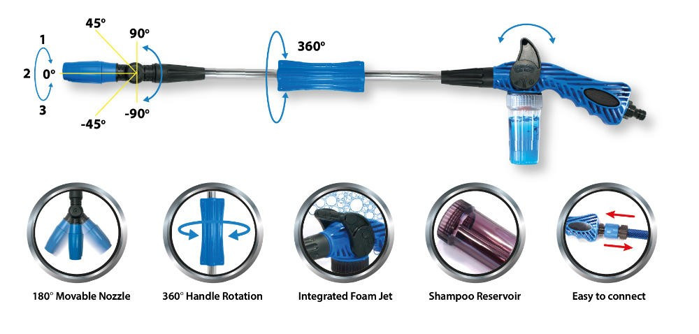 – Jet de spuma integrat – utilizabil cu sampon lichid (auto)