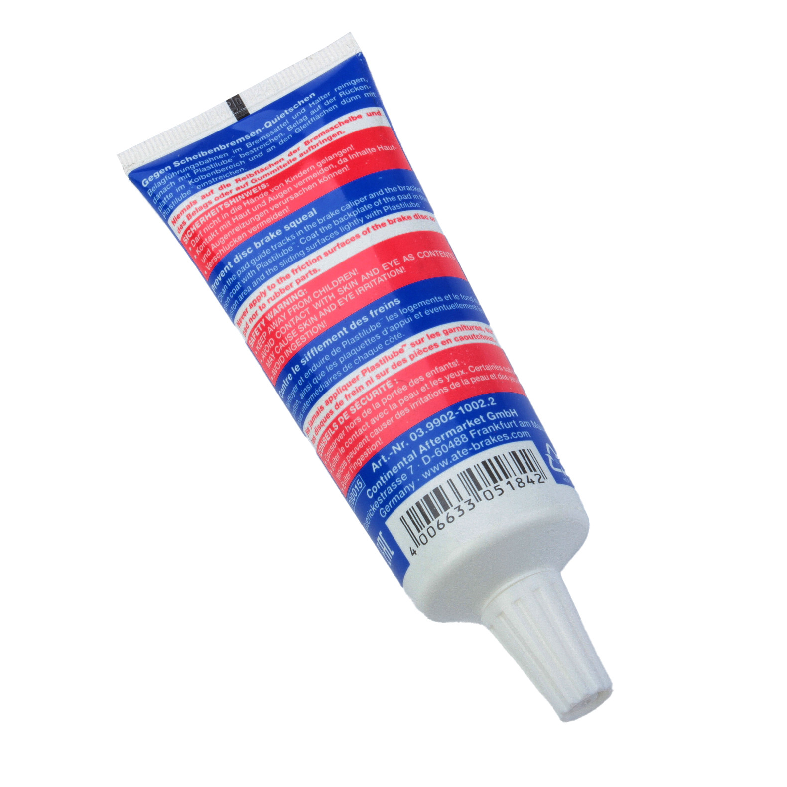ATE Plastilube lubrifiază și asigură protecție împotriva coroziunii suprafețelor de ghidare ale etrierilor de frână și ale plăcuțelor de frână.