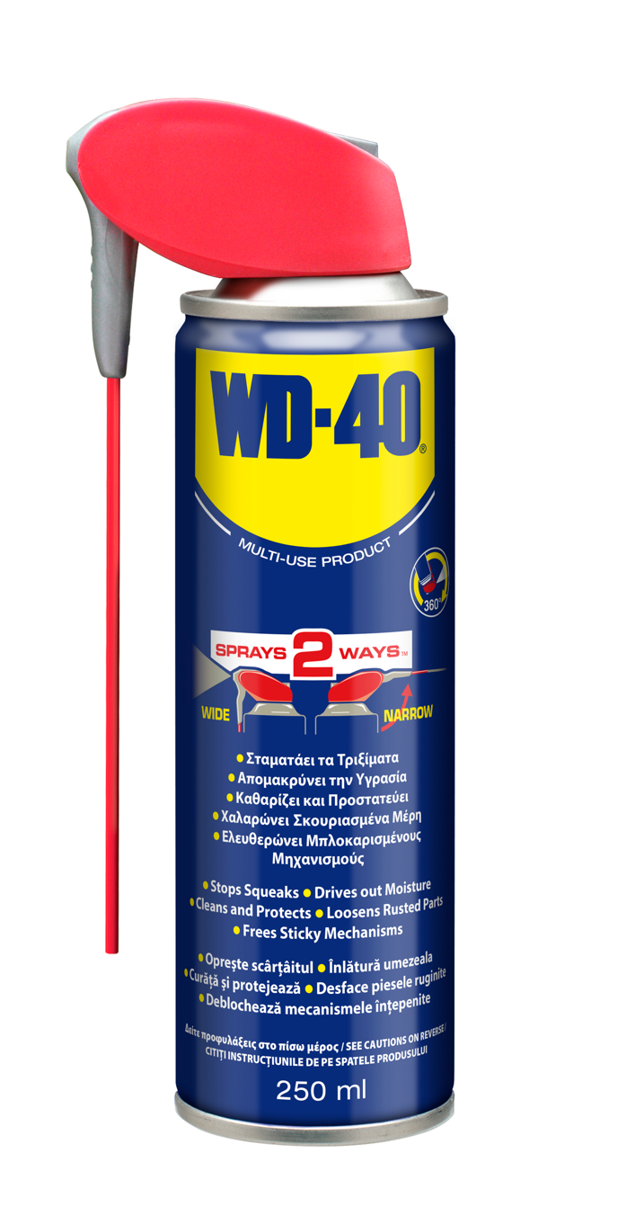 Produsul multifuncțional WD-40 protejează metalul de rugină și coroziune, se potrivește în piesele blocate, respinge umezeala și lubrifiază aproape orice.