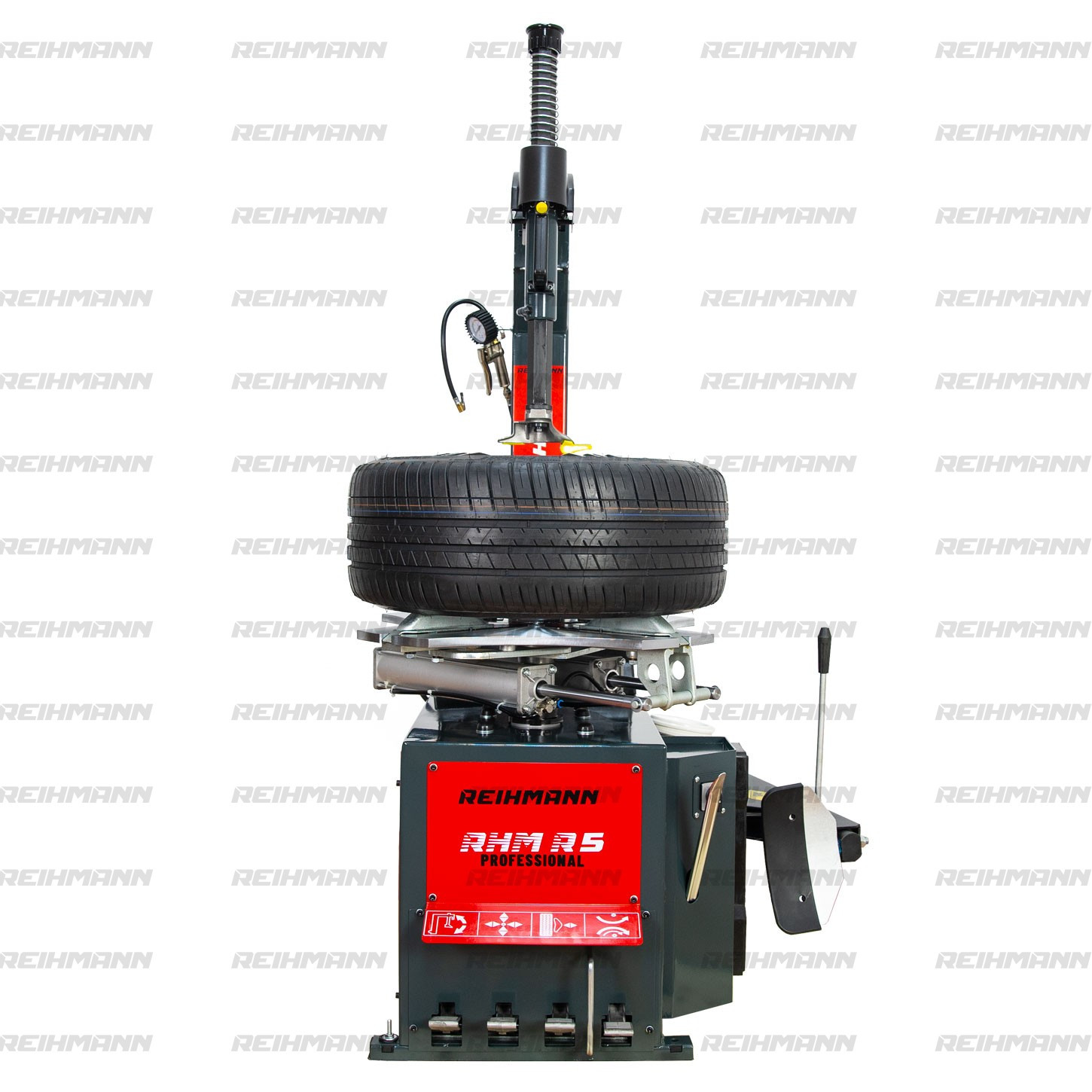 Masina dejantat roti profesională Reihmann RHM R5. Coloană rabatabilă pe spate permite montarea unui brat ajutator pentru anvelopele Run Flat cu talonul mic. Capacitate de prindere a jantei 10-24 inch destinată vulcanizarilor profesionale cu un flux mare de lucru un aparat dejantat roti recomandat de noi. O presă dejantat anvelope foarte fiabilă pe care vă puteți baza cu toată încrederea mult timp din momentul achiziției, aceasta este recomandata pentru toate tipurile de roți de la autoturisme, SUV-uri, microbuze, camionete cu axă dublă, anvelope sport, Run Flat. Foarte precisă și puternică, ideala pentru jantele din aluminiu. Pachetul include set protectie jante aluminiu, levier si pistol manometru presiune.