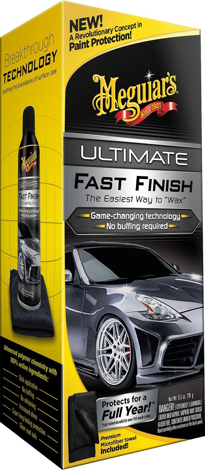 Meguiars Ultimate Fast Finish este un produs foarte usor de aplicat si care dureaza. Testele de laborator arata ca acesta protejeaza vopseaua chiar si dupa 100 de spalari manuale cu sampon.
