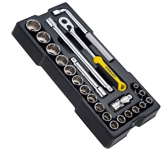 CLICHET: Blocare de siguranță a cheii tubulare, inversare cu manetă: sensul de rotație este afișat, oțel-crom-vanadiu, mâner din două materiale, ergonomic, rezistent la substanțe chimice, buton de eliberare rapidăACCESORII: Mâner în formă de L; oțel-crom-vanadiu, mâner moletatACCESORII SUPLIMENTARE: Extensii și îmbinare: oțel-crom-vanadiu, finisaj lustruit complet (extensii)CONȚINUT: 18 capace: 8, 9, 10, 11, 12, 13, 14, 15, 16, 17, 18, 19, 21, 22, 24, 27, 30, 32 mm, 1 clichet NP9, 1 mâner în formă de L 90°, 2 extensii 125 + 250 mm, 1 articulație cu nucă
