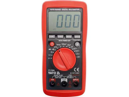 Cu multimetru YT-73084 putem măsura tensiunea DC sau AC, DC sau AC, precum și rezistența, capacitatea condensatorului, diodele de control și măsurarea temperaturii. Multimetrul are o gamă automată care facilitează și accelerează măsurătorile.