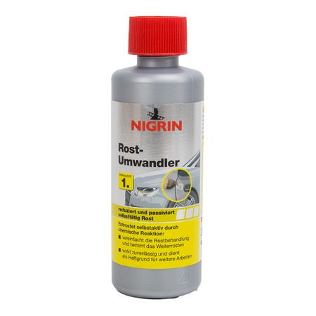 Impiedica depunerea de rugina, pregateste pentru lacuire, vopisire.Rugina se va indeparta chimic. Suprafetele tratate vor fi protejate de coroziune. Pregatirea pentru chituire sau vopsire, lacuire. Utilizare:Se indeparteaza rugina in mare cu o perie sarma sau smirghel. Se unge suprafata dorita cu o pensula inmuiata in dizolvant rugina si se lasa peste noapte sa se usuce si sa actioneze.Resturie se vor spala cu apa. Suprafata tratata se va chitui si se va vopsi. Pentru a evita deteriorarea vopselei se va indeparta imediat dizolvantul de ruginade pe suprafetele vopsite. R36/38: Irita ochii si pielea.