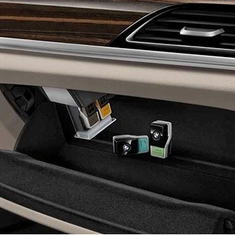 Prin simpla apasare a unui buton, gratie pachetul optional BMW – Ambient Air, invaluie interiorul automobilului intr-un parfum discret si placut. Sunt disponibile opt parfumuri din patru teme diferite, utilizabile chiar si cate doua in acelasi timp, cu eliberare alternativa a parfumului in interior. Cele opt parfumuri sunt impartite in patru categorii: „Blue Suite” cu parfumuri de apa proaspata, „Green Suite” cu parfumuri de plante proaspete, „Golden Suite” cu parfumuri calde, bogate si „Authentic Suite” cu parfumuri naturale. Intensitatea parfumului poate fi reglata pe trei niveluri, in timp ce se elibereaza parfumul, aerul adus din exterior este filtrat si purificat. In plus, calitatea aerului este imbunatatita in mod semnificativ prin ionizarea oxigenului. Aceasta functie poate fi activata prin intermediul Controller-ului iDrive sau direct prin intermediul unui buton de pe unitatea de control a aerului conditionat. Toate parfumurile dureaza aproximativ sase luni la o utilizare medie si sunt disponibile in colectia de Accesorii BMW Originale.Cartusele de inalta calitate sunt realizate din materiale ce nu permit scurgerea uleiurilor aromate cu care sunt impregnate. Cartusul de parfum se introduce pur si simplu in spatiul dedicat din compartimentul torpedoului.