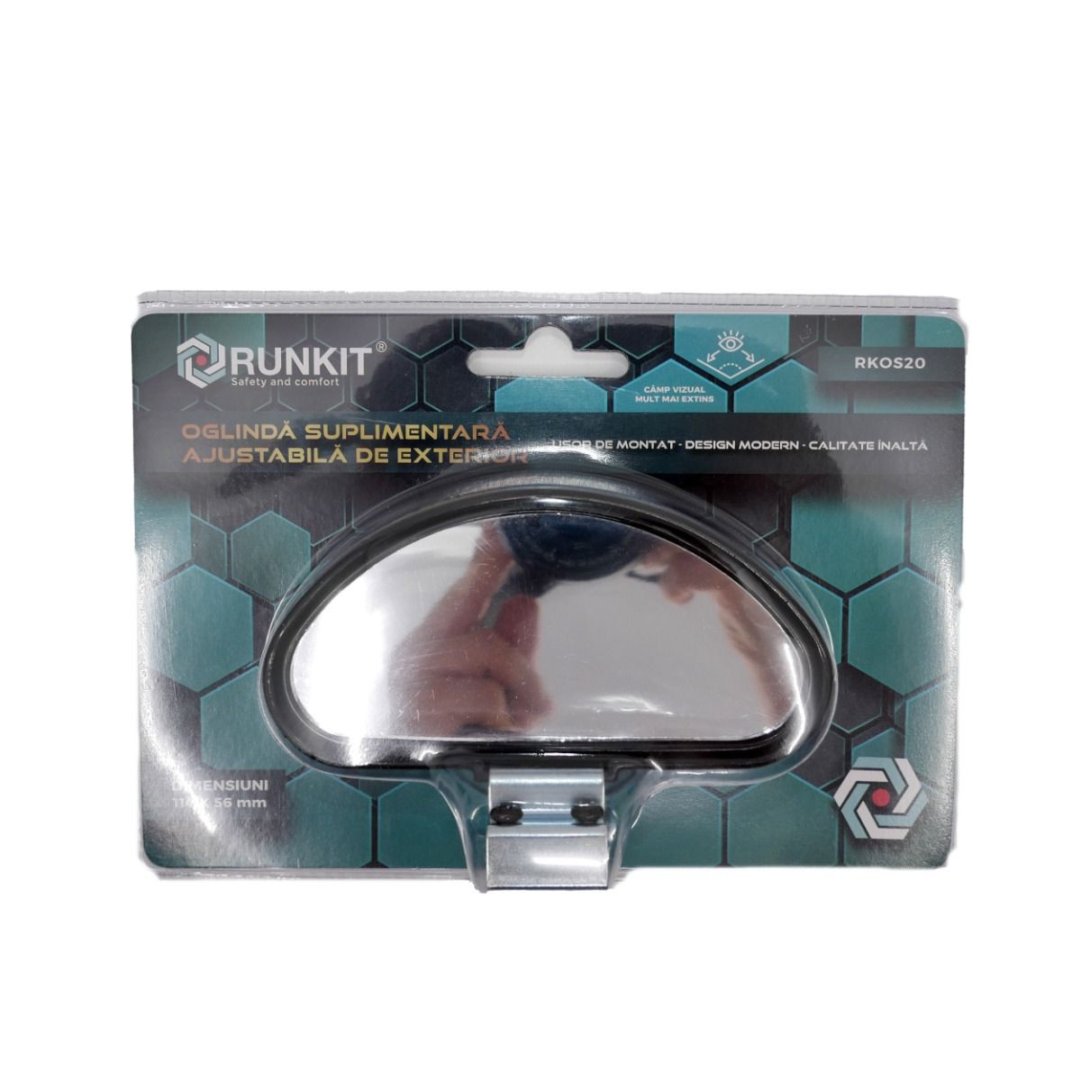 Camp vizual mult mai extins Unghi reglabil Design modern, calitate inalta, usor de montat Alegeti pozitia potrivita pentru a o atasa de oglinda laterala si fixati-o cu ajutorul suportului inclus. Strangeti bine cele doua suruburi ale suportului pentru o fixare buna. La final, asigurati-va ca unghiul de reflexie este corect.