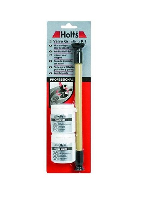 Kitul de șlefuire a supapelor Holts conține două grade de abrazivi de înaltă calitate pentru a îndepărta depunerile persistente și, de asemenea, pentru a reașeza la suprafață și a „reașeza” supapele. Lustruirea grosieră poate fi folosită pentru a suprafața supapelor foarte murdare sau a scaunelor supapelor cu sâmburi cu un efort minim, în timp ce abrazivul fin lustruiește rapid scaunele supapelor. Folosirea abrazivelor cu bețișorul cu ventuză va ajuta la așezarea corectă a supapelor, la restabilirea compresiei cilindrilor și la îmbunătățirea puterii și eficienței motorului.