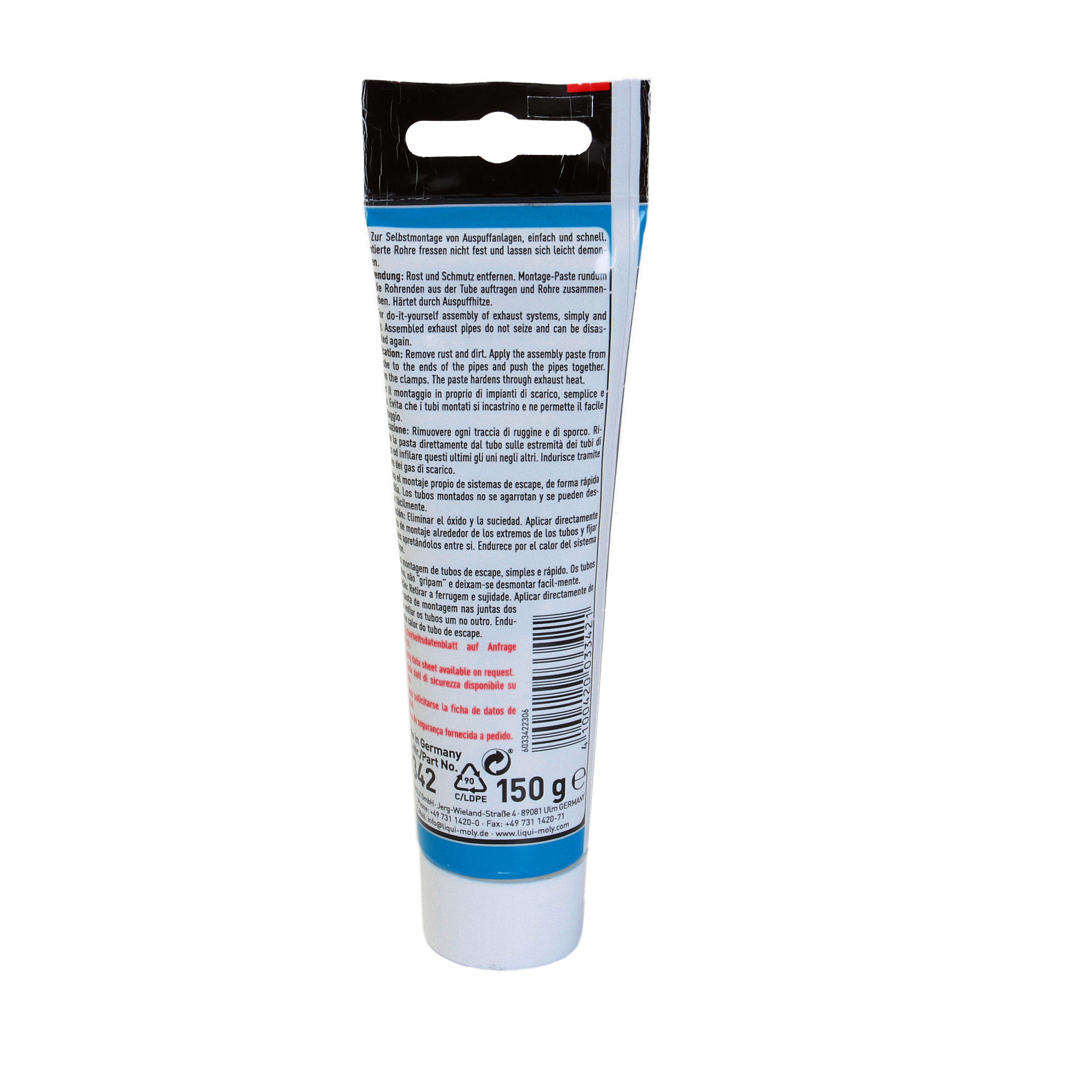 Pentru etanşarea durabilă a componentelor sistemului de eşapament. Termorezistentă. Utilizare simplă şi rapidă. Pentru montajul profesional al sistemelor de eşapament. Piesele montate nu se gripează şi se pot demonta cu uşurinţă. Domeniu de temperaturi utilizare, până la aprox. + 700 °C.