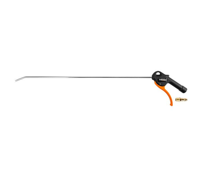 Pistolul de suflat 510 mm 14-728 de la NEO TOOLS, caracterizat printr-o lungime de 510 mm, este un instrument echipat cu un vârf îngust, care permite suflarea în locuri greu accesibile. Pistolul, fabricat din PA66 + fibră de sticlă + Metal Max, asigură durabilitate și robustețe pentru mulți ani de utilizare. Suportă o presiune de 6 bari și are un conector de ¼”. Pistolul de suflat marca NEO TOOLS este un instrument de atelier cu eficiență dovedită.
