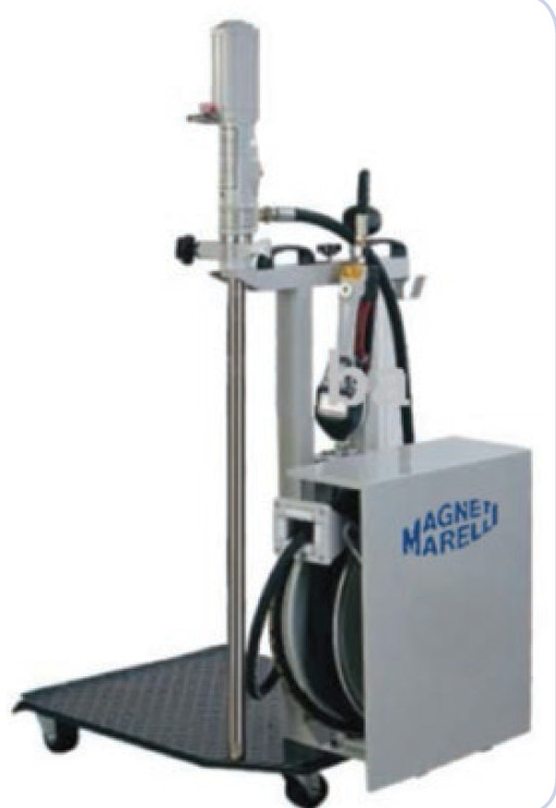 Platforma pentru butoaie de 180-200L, pompa5:1, pistol electronic, furtun 4m + rola prelungitor 15m-dispozitiv pentru manevrarea uleiului.